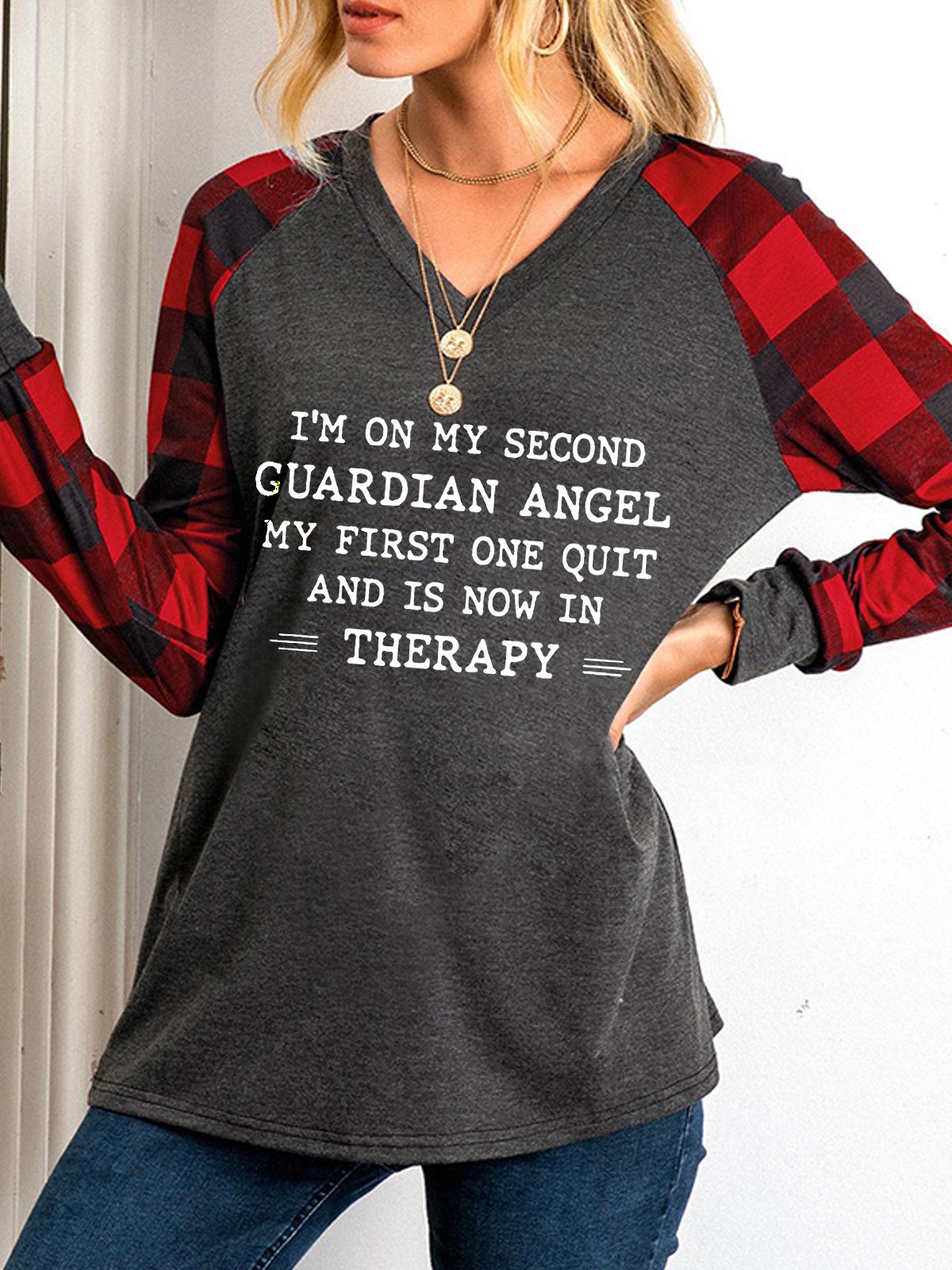 I 'M On Second Guardian Angel V Neck Cotton Blends Sweatshirts