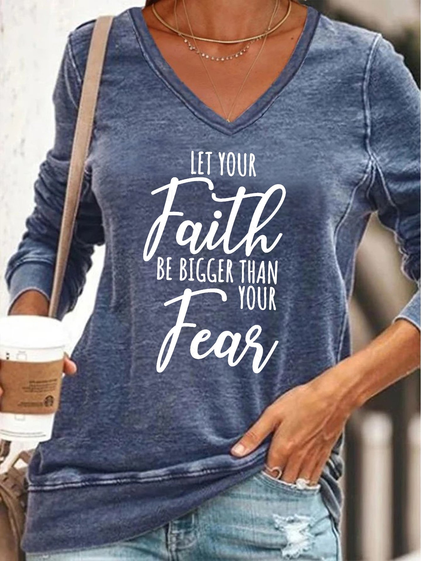 Inspirational text printing V-neck long-sleeved Sweatshirts