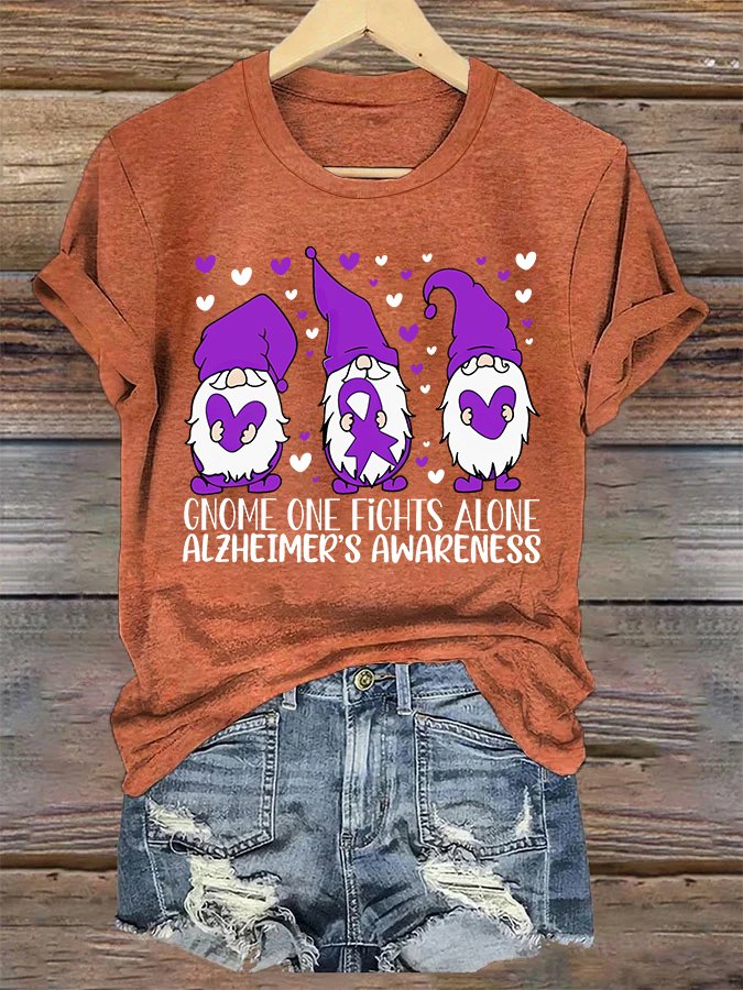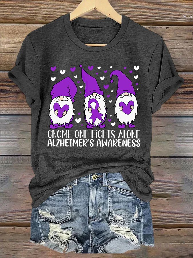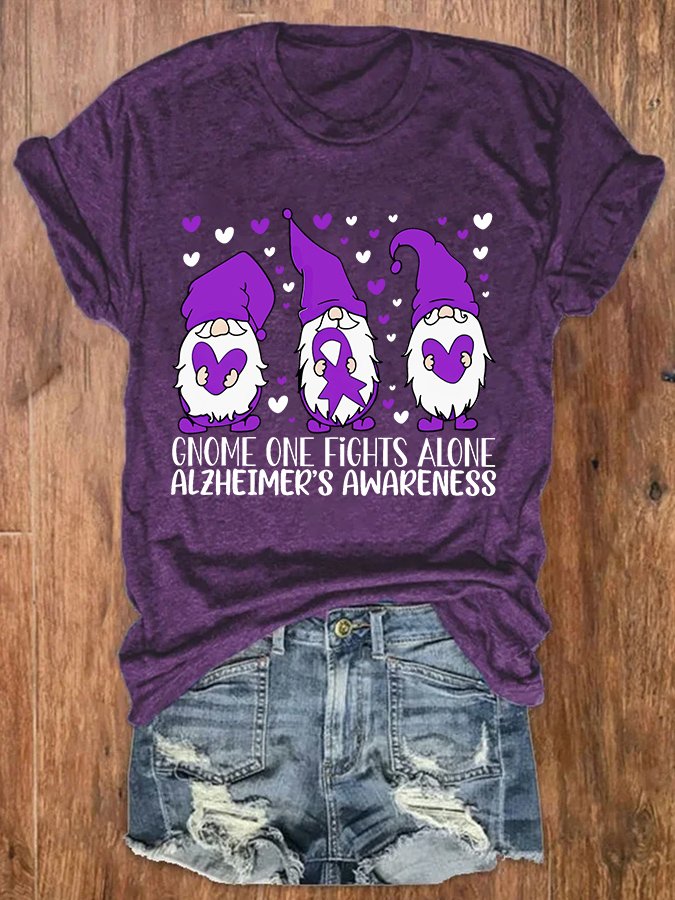 Alzheimer's Awareness Gnome One Fights Alone Simple Loose T-Shirt