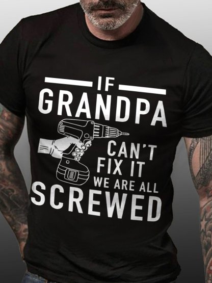 If Grandpa Can't Fix It We Are All Screwed Cotton Blends Casual Crew Neck T-shirt
