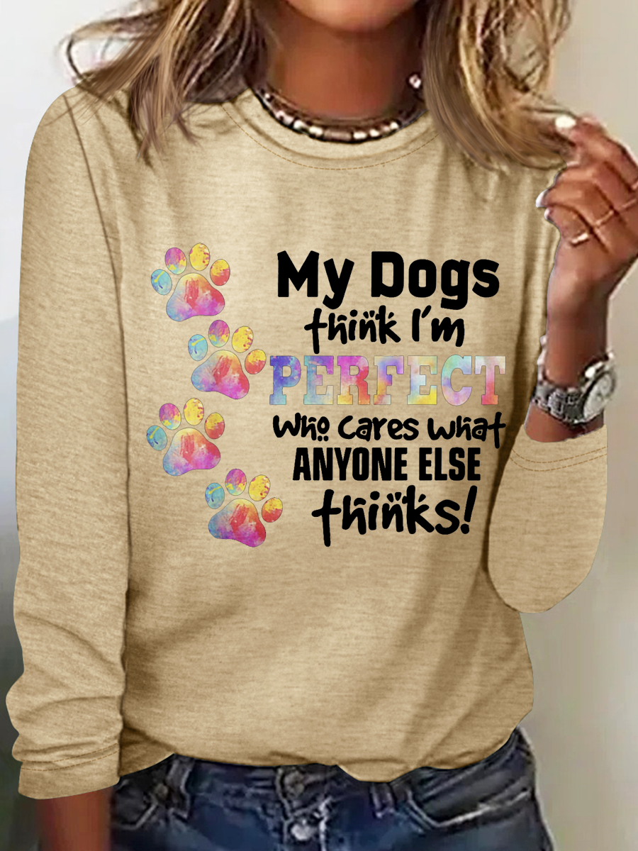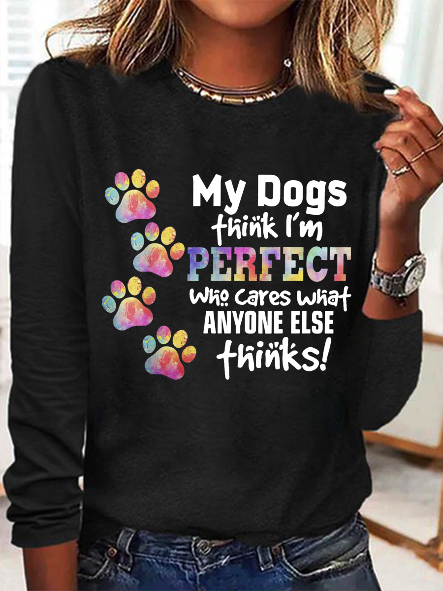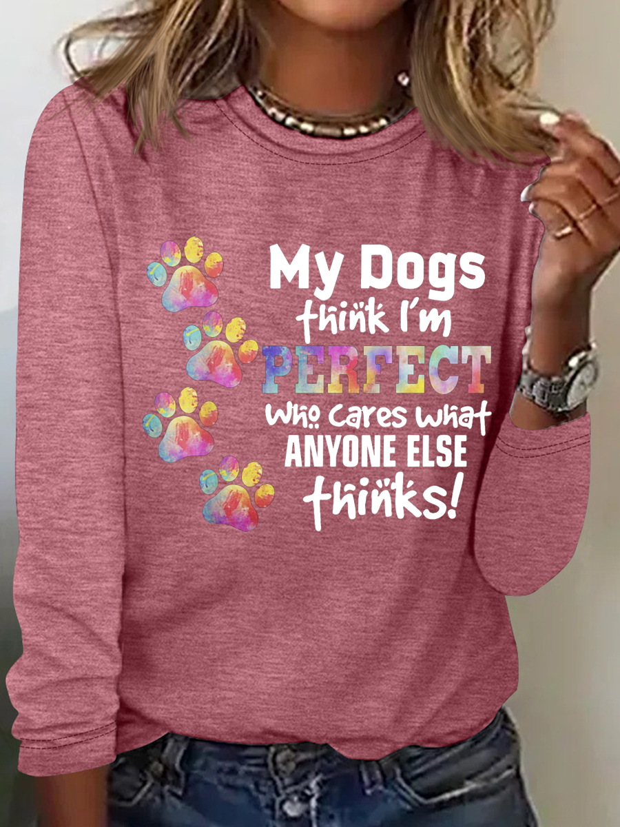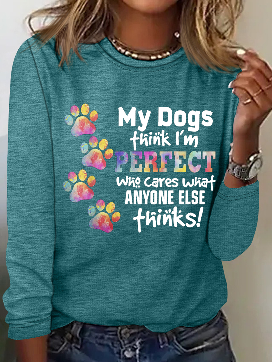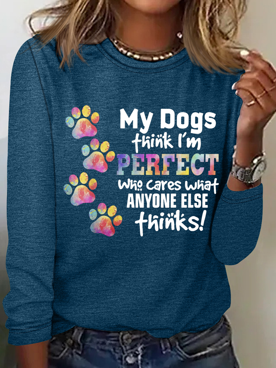 My Dogs Think I'm Perfect All-Over Crew Neck Cotton-Blend Simple Long Sleeve Shirt