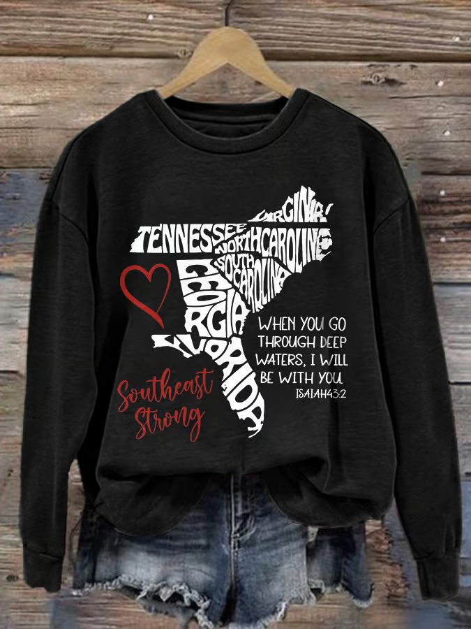Retro Southeast Strong When You Go Through Deep Waters, I Will Be With You Isaiah 43:2 Tennessee Georgia, South Carolina, North Carolina, , Virginia, Florida Print Sweatshirt