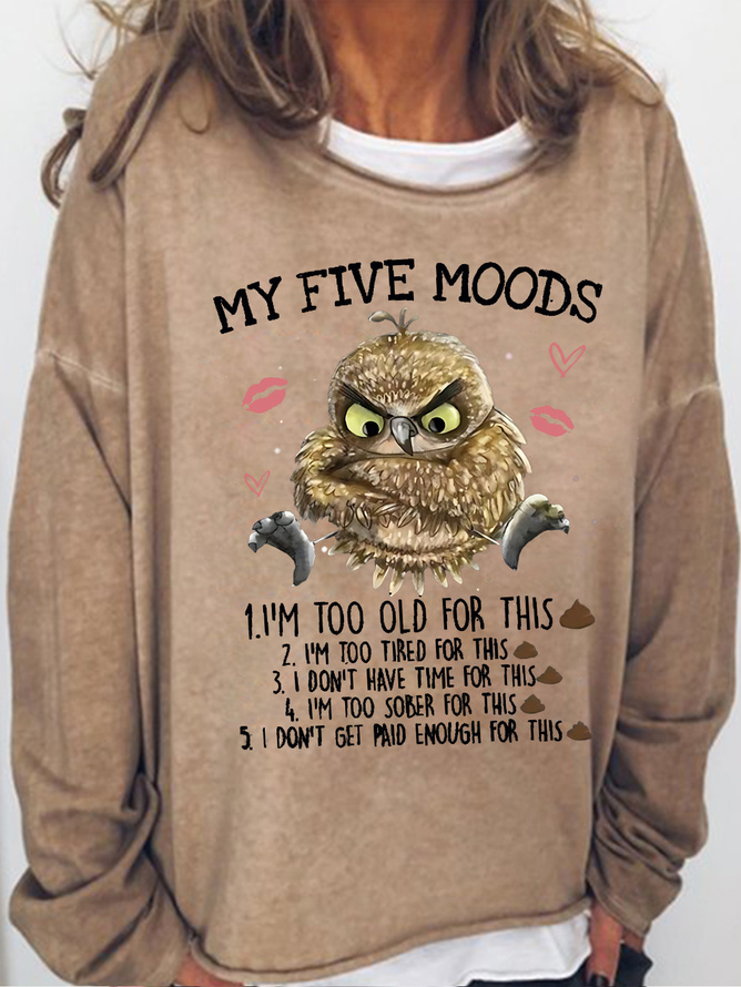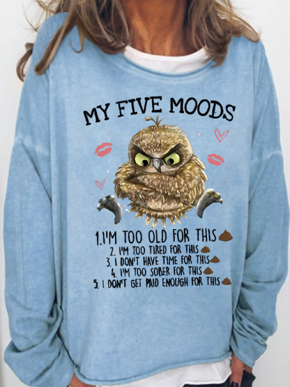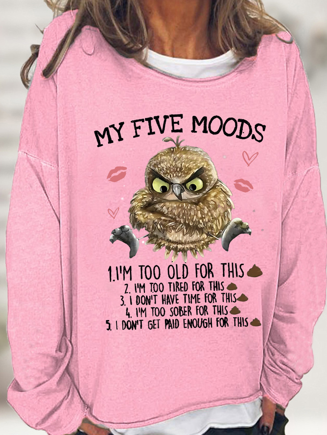 Women's 5 Five Mood Letters Owl Casual Sweatshirt
