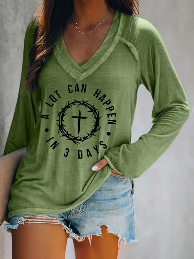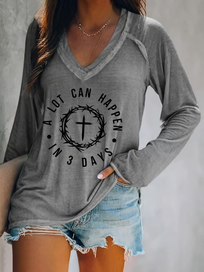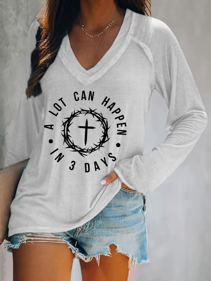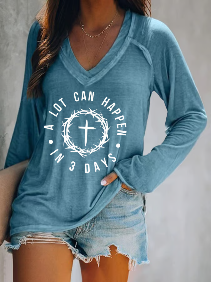 Women's A Lot Can Happen In 3 Days Printed Casual Long Sleeve T-Shirt