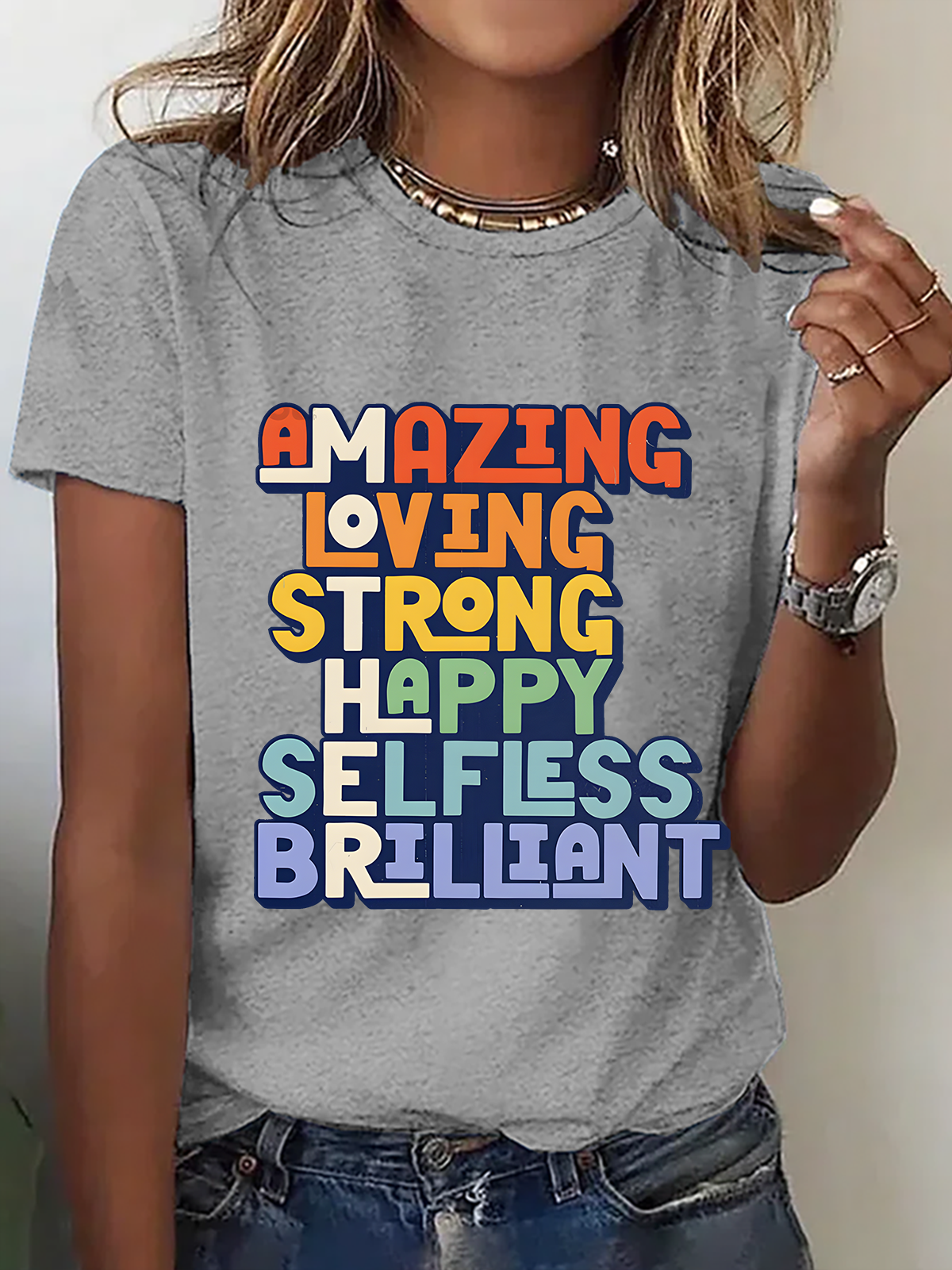 Mother's Day Letter Pattern Short Sleeve V Neck Loose Casual T-Shirt