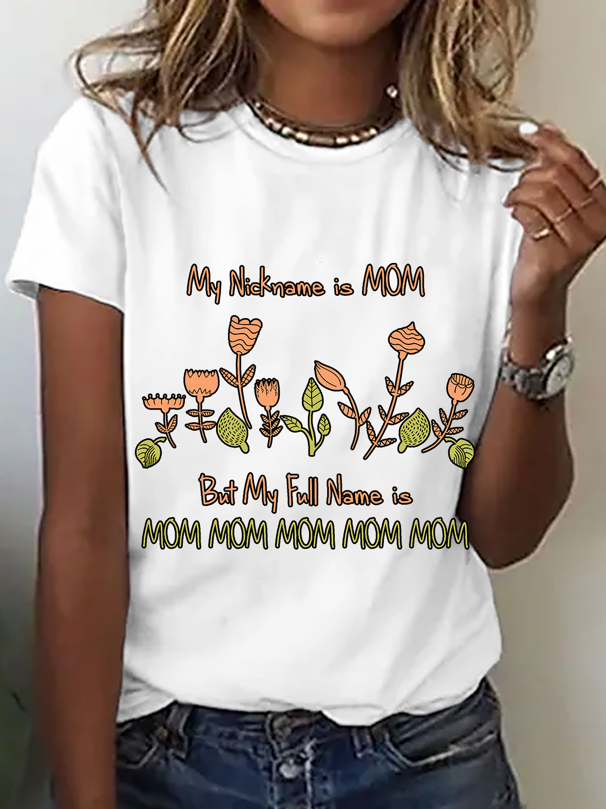 Mother's Day Letter Pattern Floral Short Sleeve Round Neck Loose Casual T-Shirt