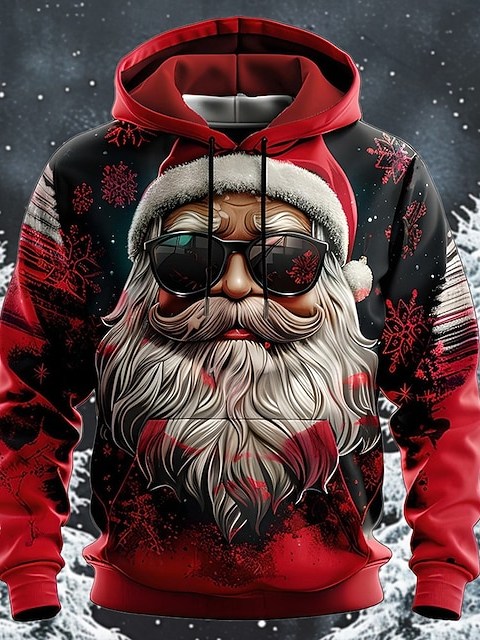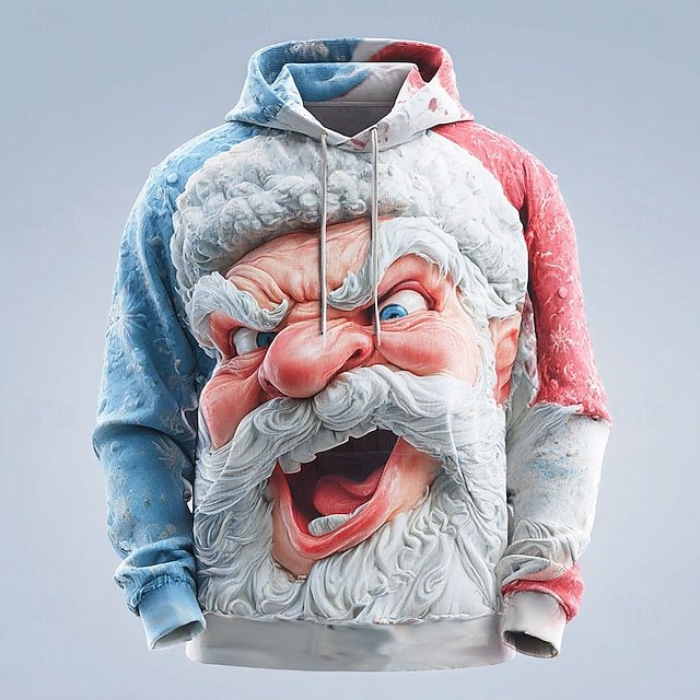 3D Print Christmas Ugly Hoodie Men's Vintage Santa Claus Print Hoodie