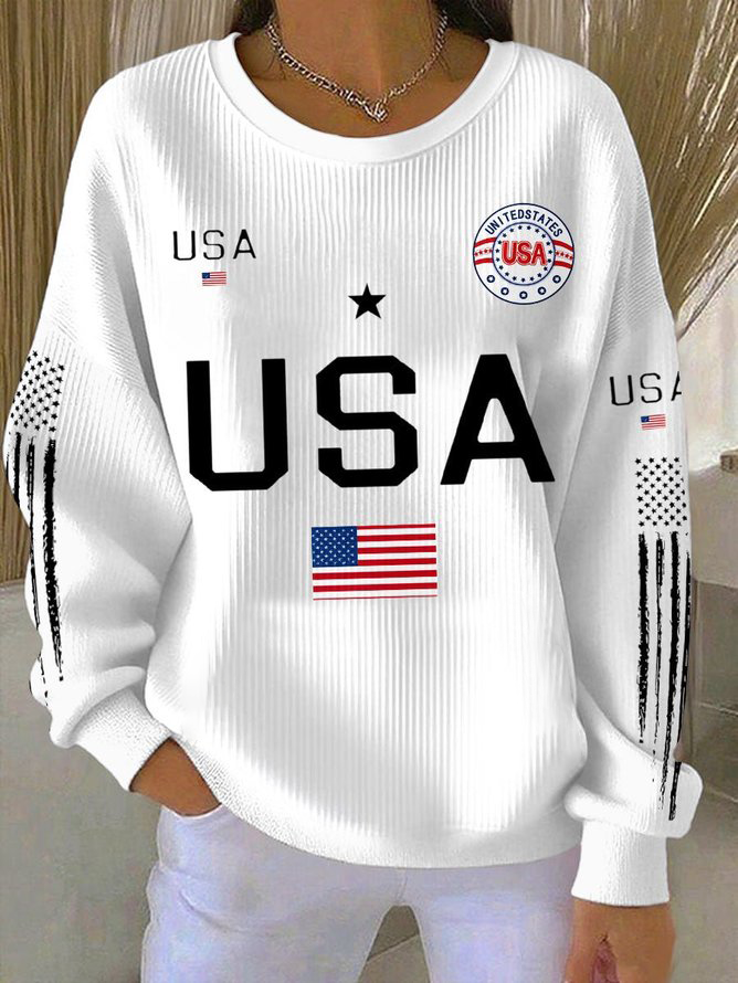 Crew Neck Independence Day Casual Sweatshirt