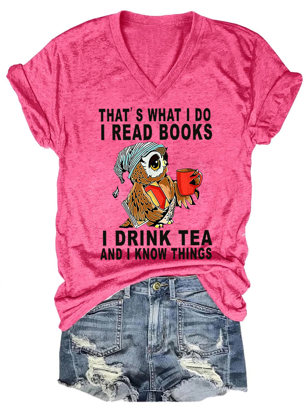 Women Owl That’s What I Do I Read Books I Drink Tea And I Know Things Vintage Cotton-Blend V Neck Animal T-Shirt