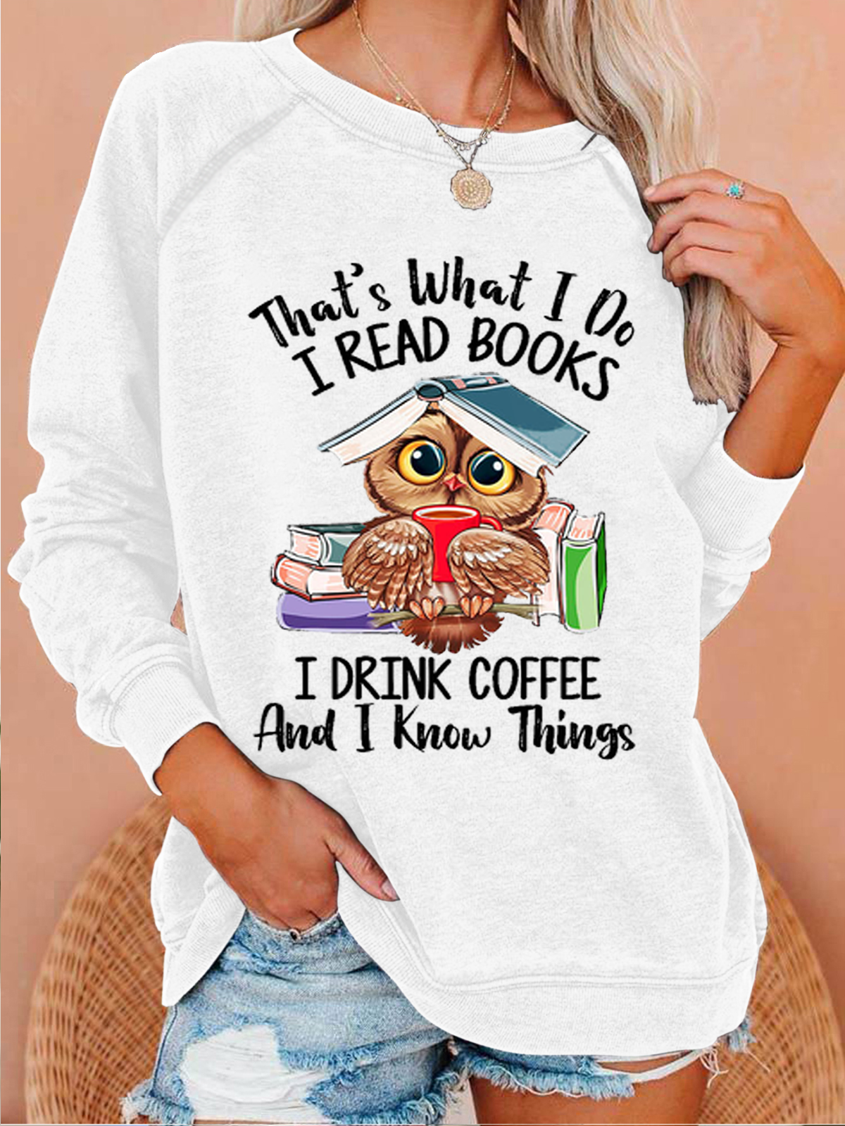 Women Owl That’s What I Do I Read Books I Drink Tea And I Know Things Vintage Casual Regular Fit Sweatshirt