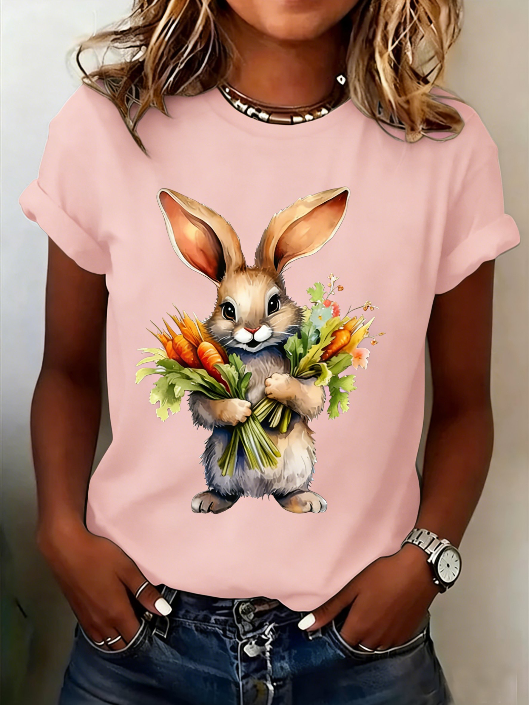 3D Printing Easter Rabbit Crew Neck Short Sleeve Casual T-Shirt