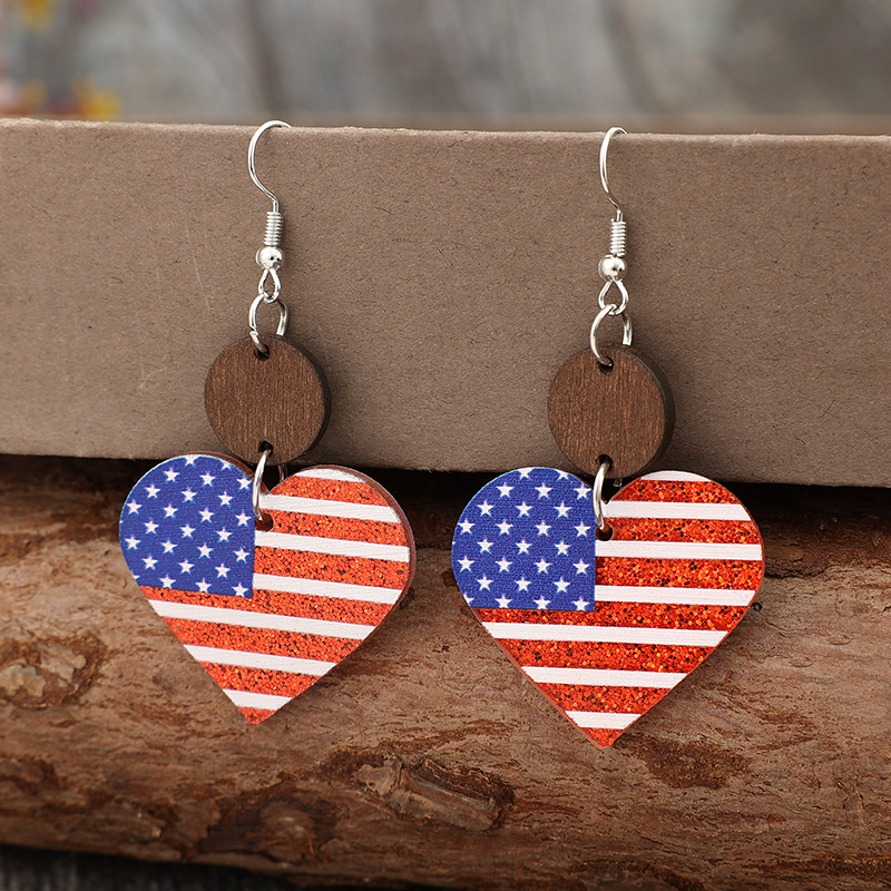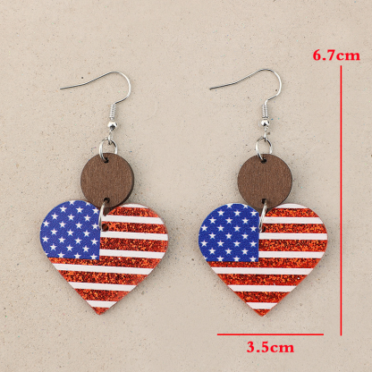 American Flag Wooden Material Acrylic Heart Earrings