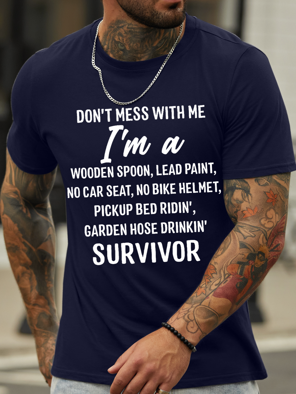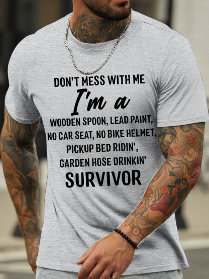 Men’s Don’T Mess With Me I Am A Survivor Loose Casual Text Letters T-Shirt