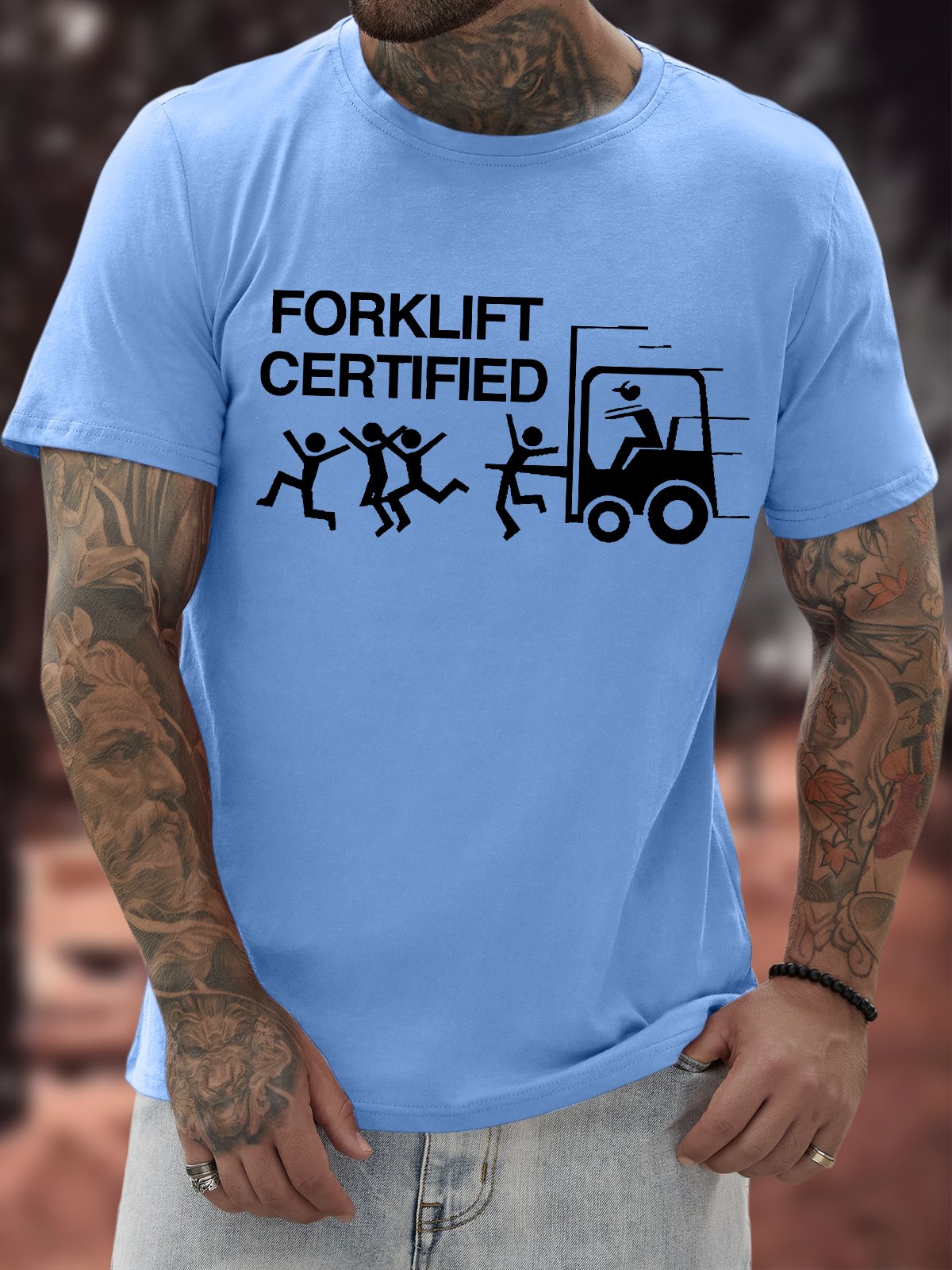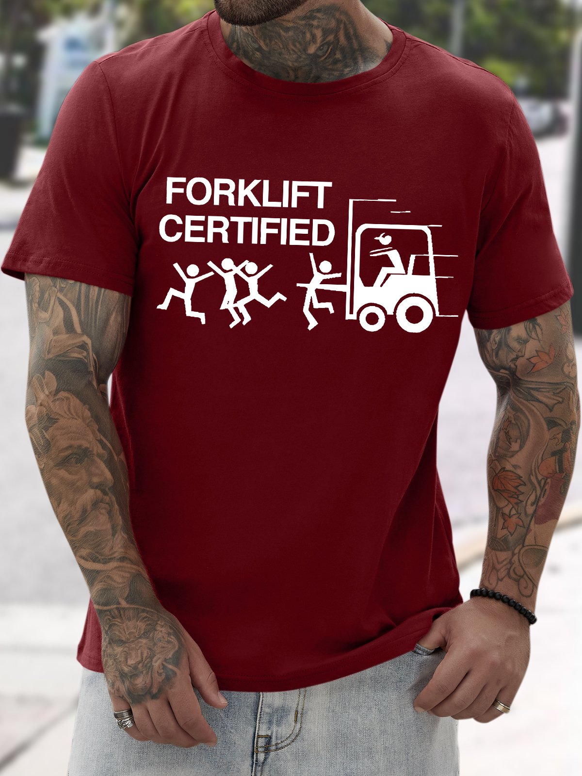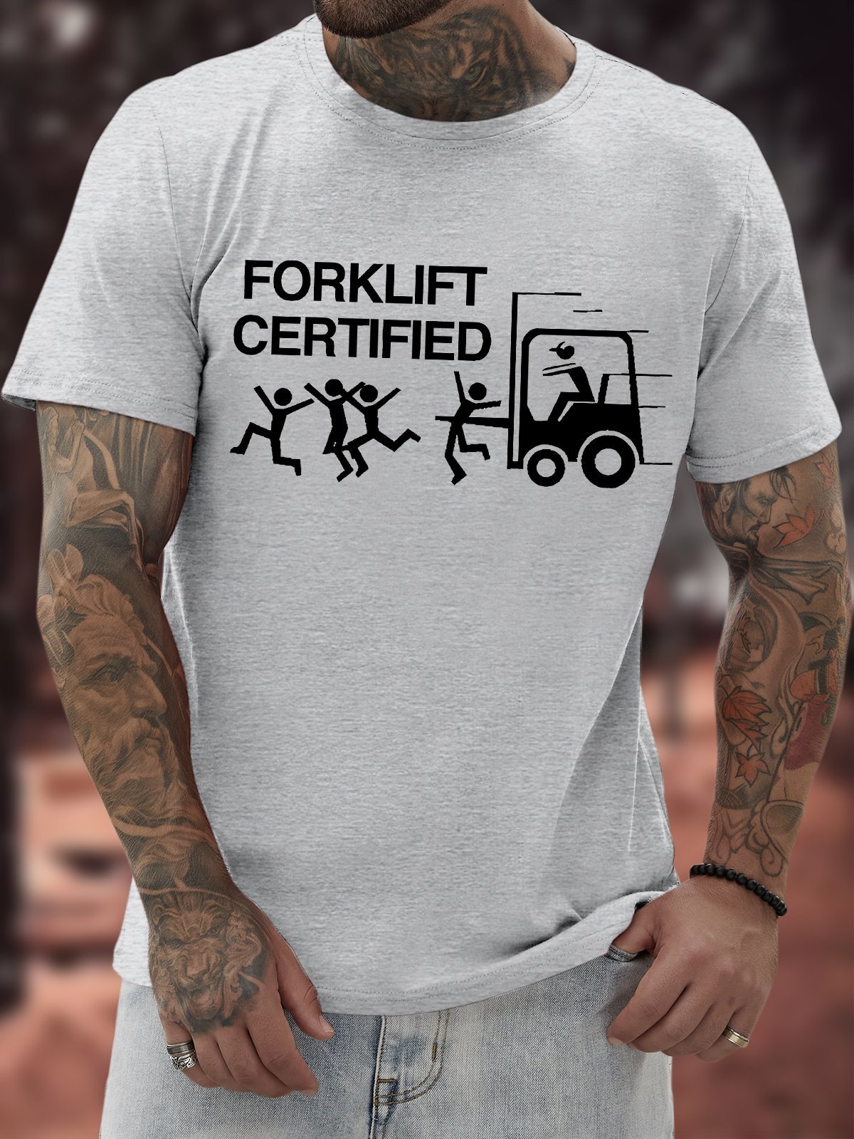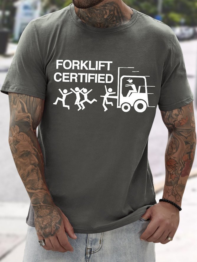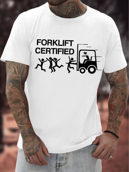 Men's Funny Forklift Certified Graphic Printing Text Letters Casual Cotton T-Shirt