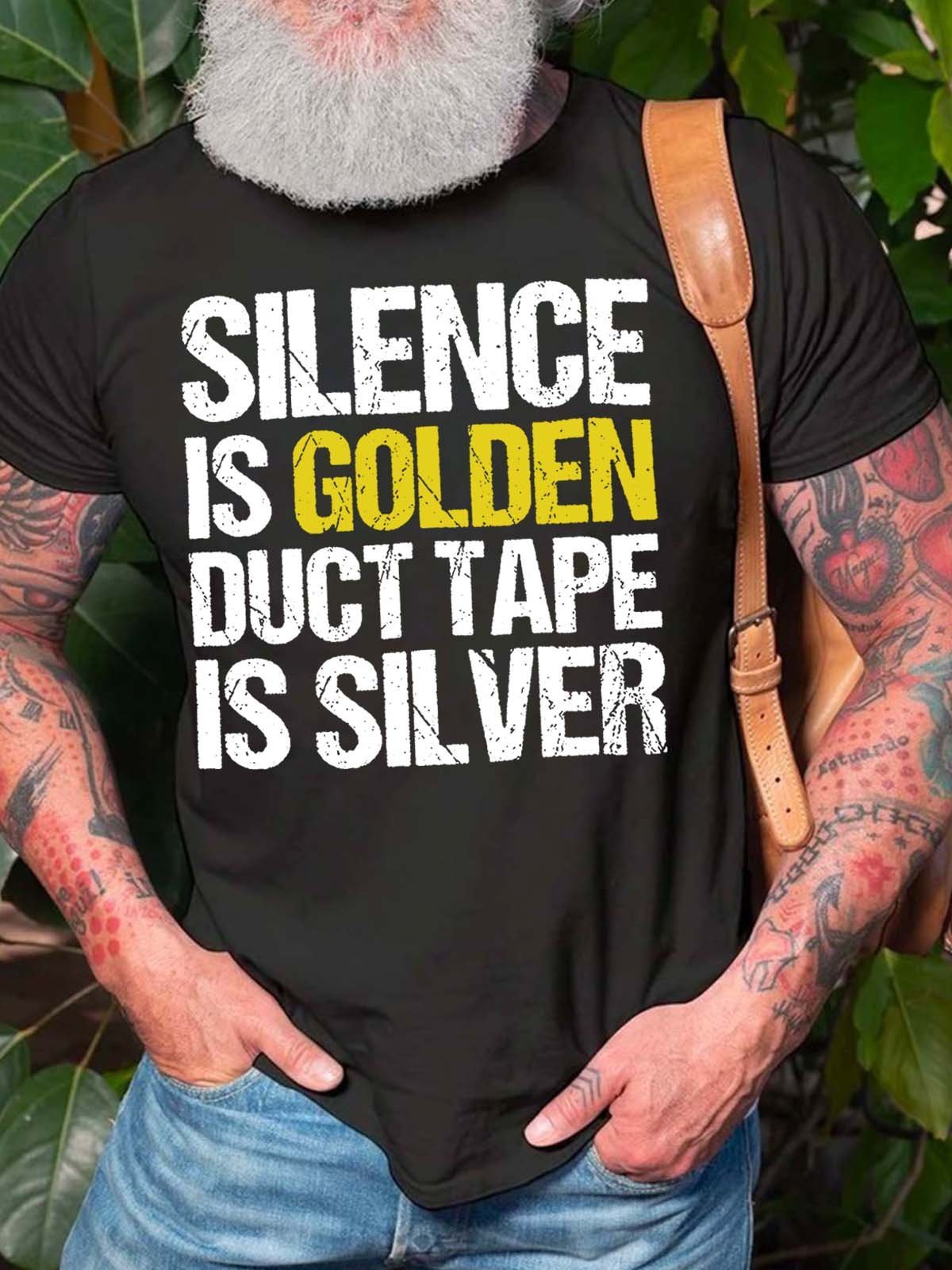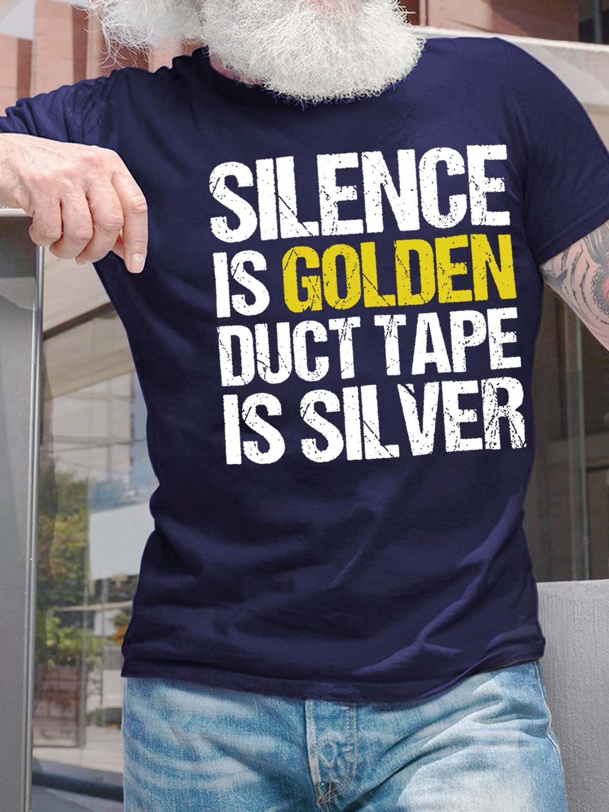Men’s Silence Is Golden Duct Tape Is Silver Cotton Casual T-Shirt