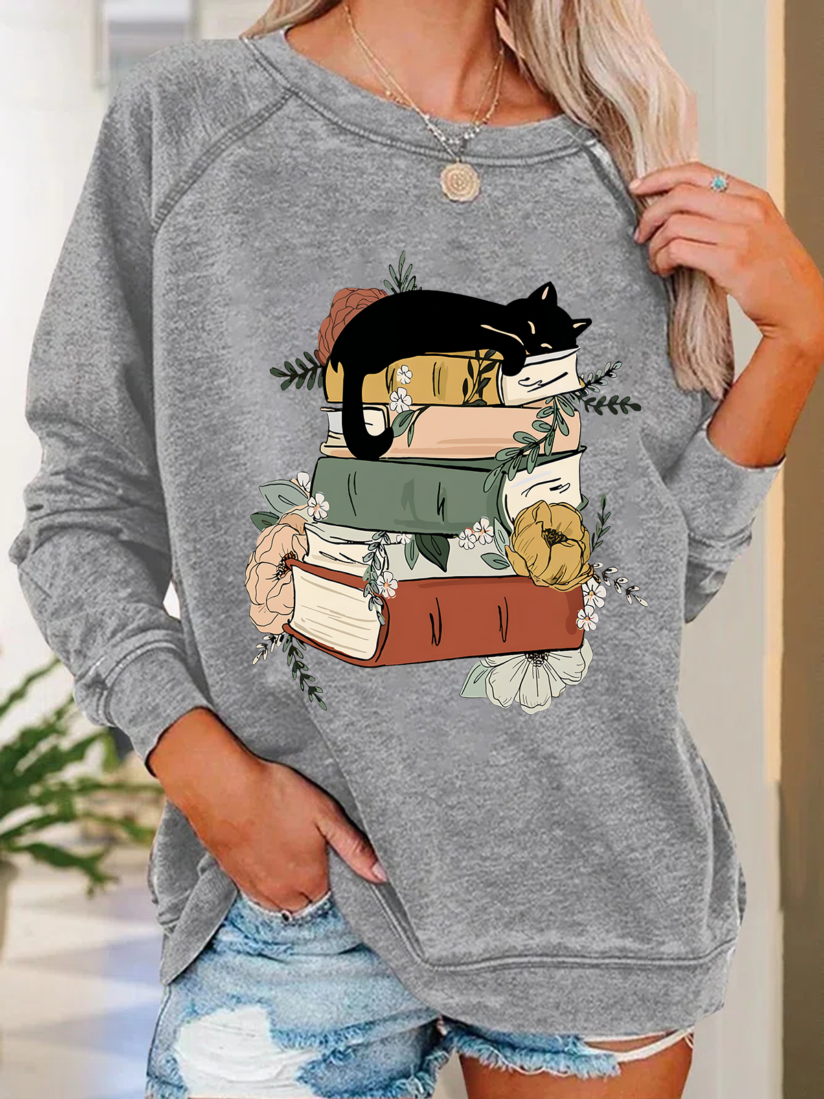 Cat Book Casual Animal Sweatshirt