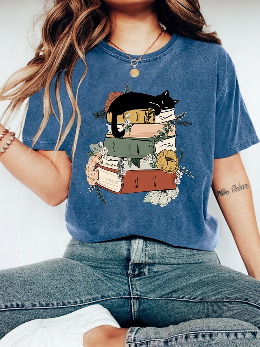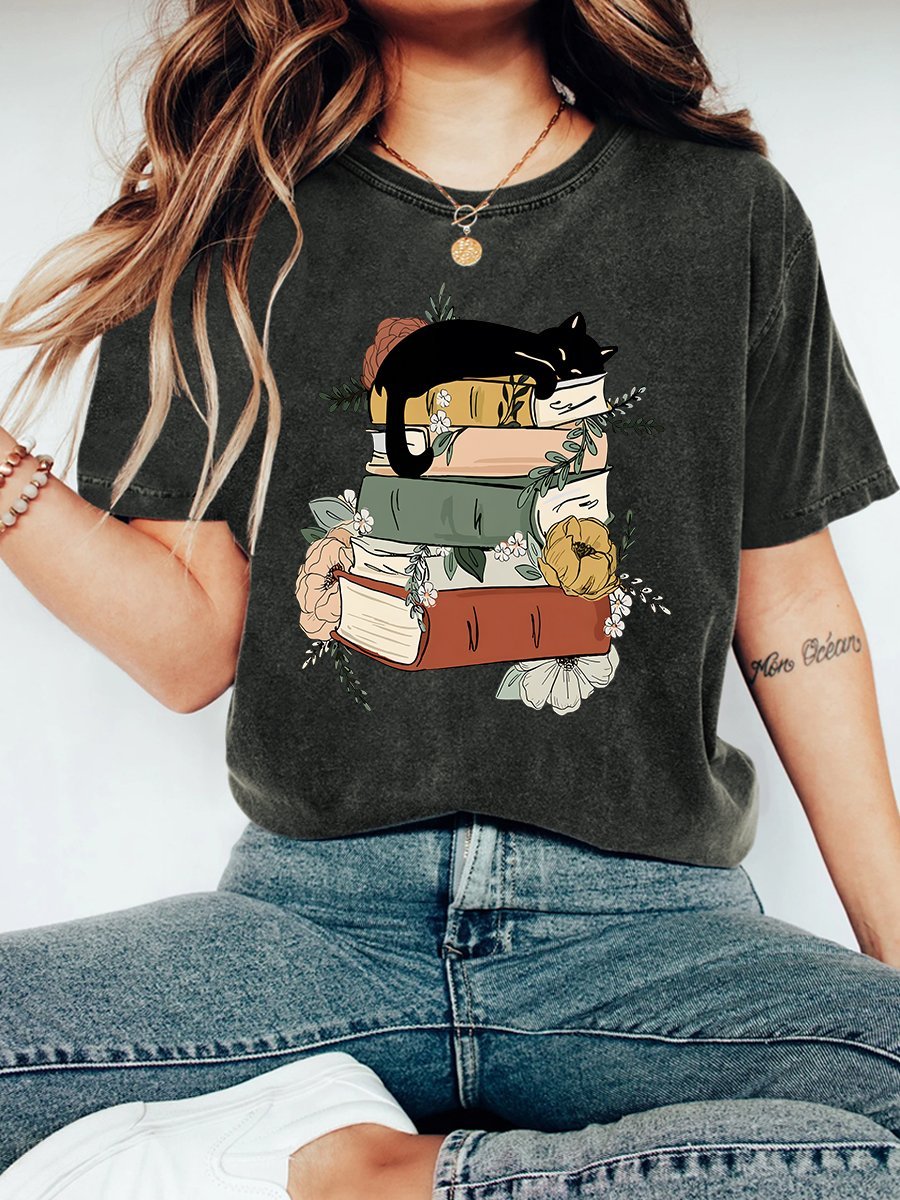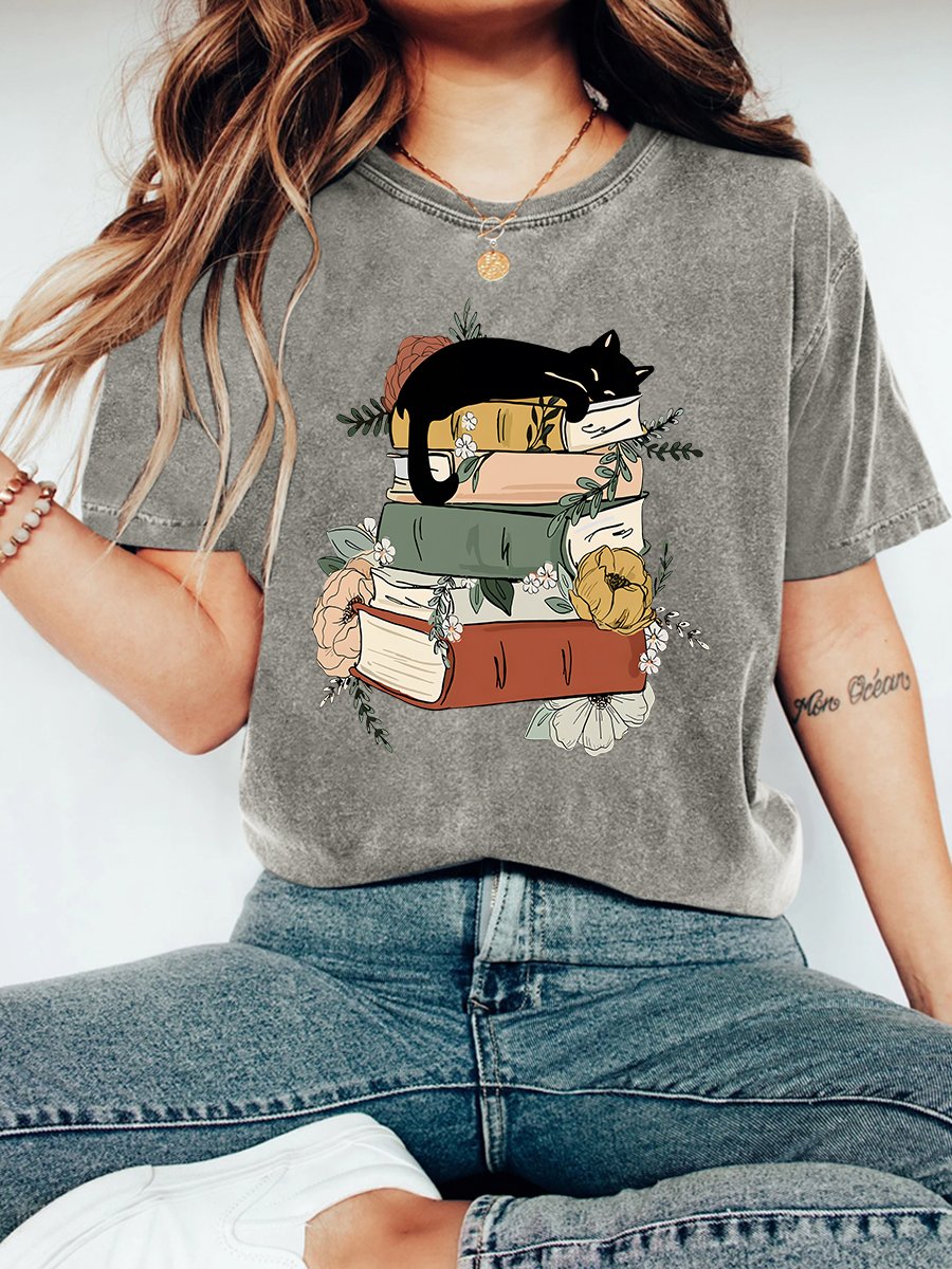 Cat Book Vintage Distressed Shirt