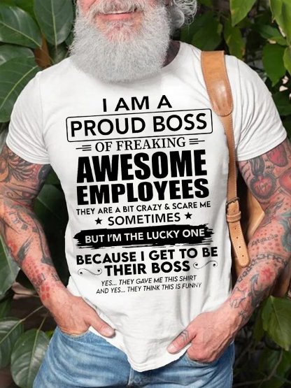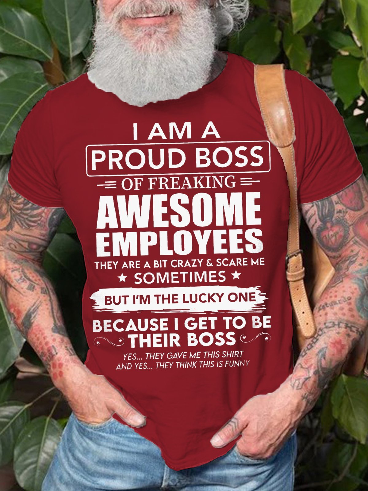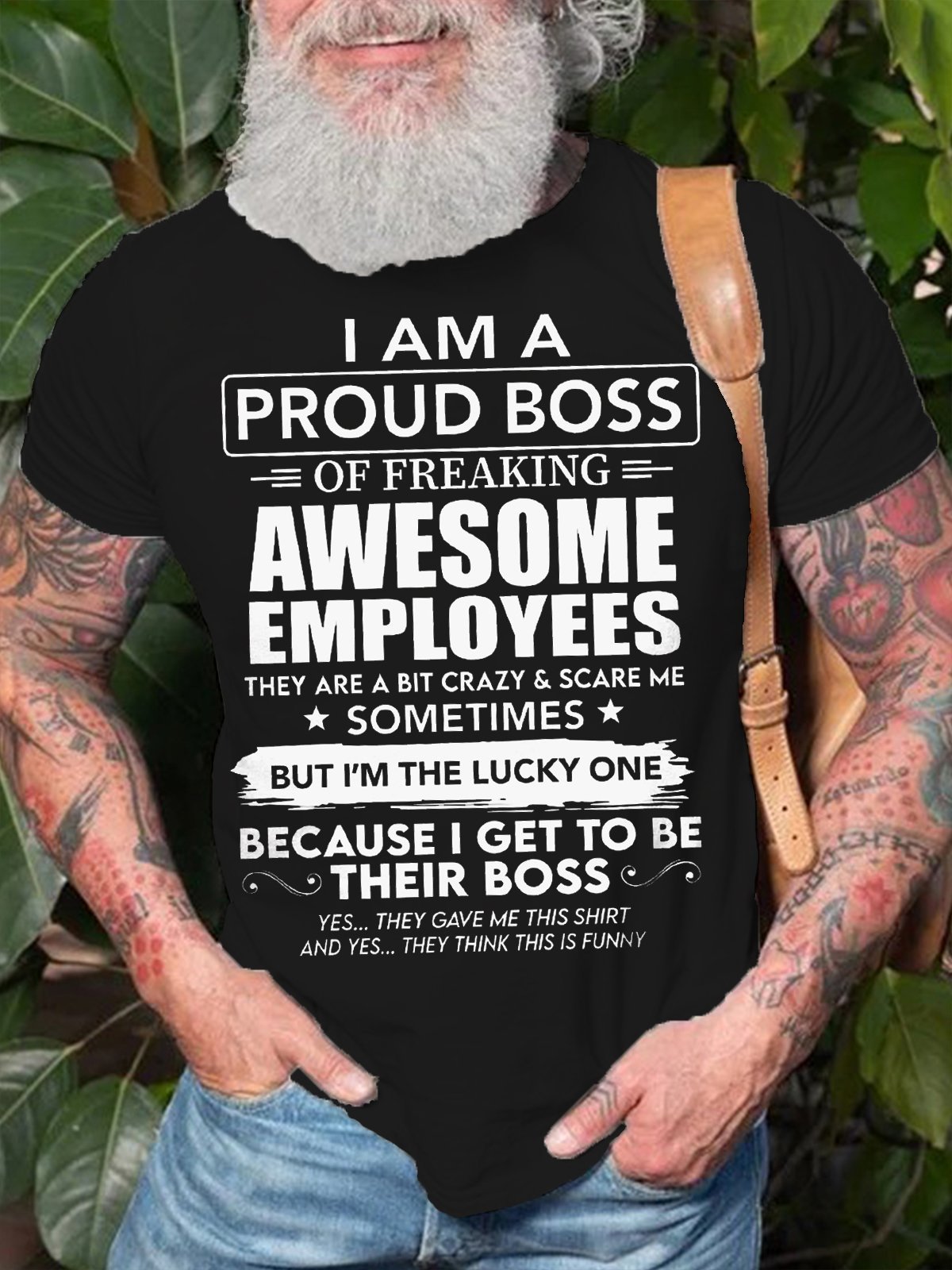 Men's Funny Holiday Gift I AM A PROUD BOSS Casual Letters T-Shirt