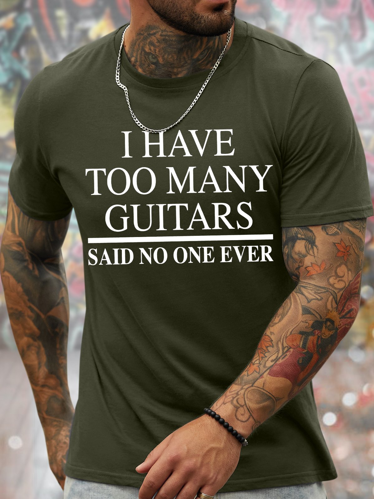 Men's I Have Too Many Guitars Said No One Ever Funny Love Music Graphic Print Crew Neck Cotton Casual Text Letters T-Shirt
