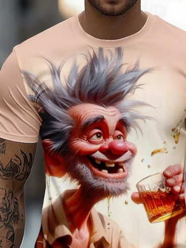 Men's Funny Old Man Whiskey Caricature Short Sleeve T-Shirt
