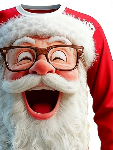 Men's Funny Santa Claus Christmas 3D Printed Loose Long Sleeve T-Shirt