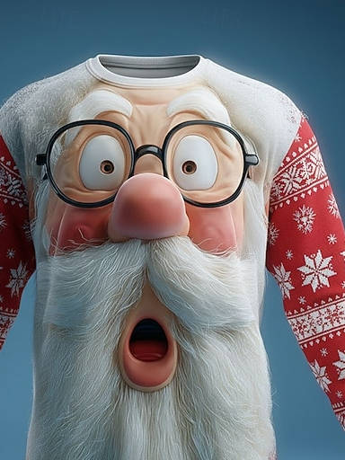 Men's Funny Santa Claus Christmas 3D Printed Loose Long Sleeve T-Shirt
