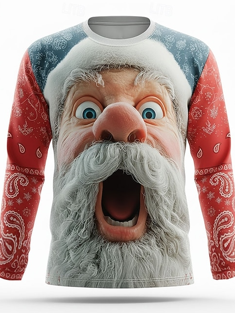Men's Funny Santa Claus Christmas 3D Printed Loose Long Sleeve T-Shirt