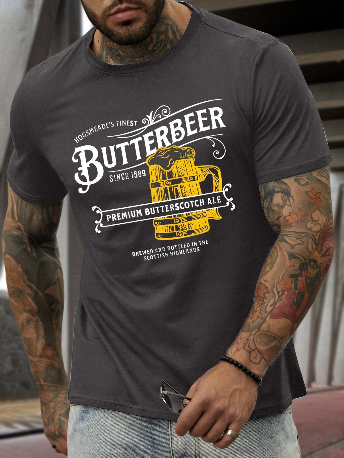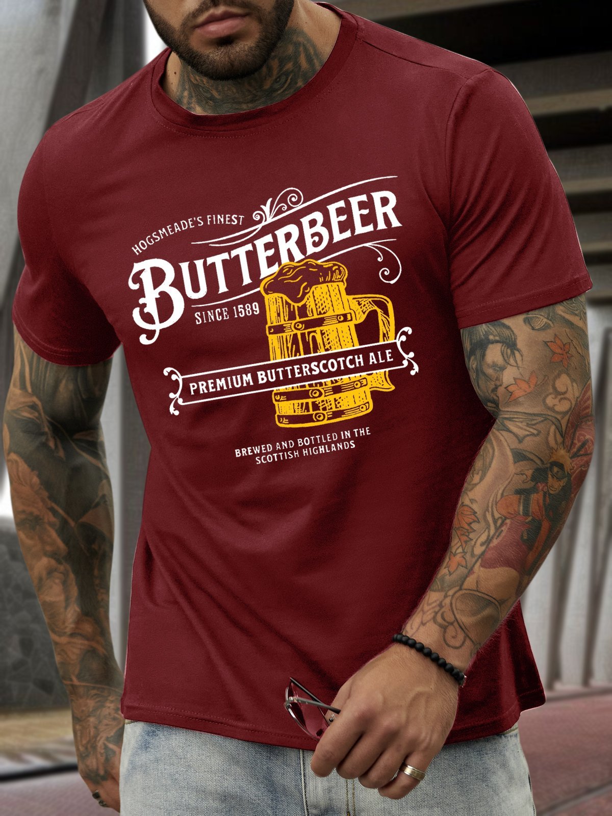 Men’s Butterbeer Text Letters Casual T-Shirt