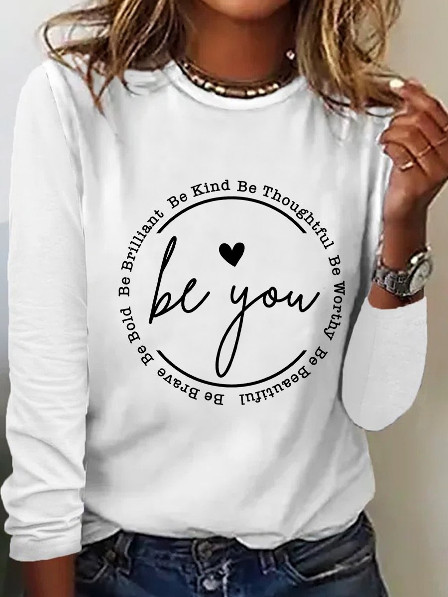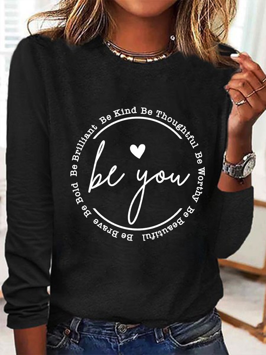 Women's Be You Crew Neck Cotton-Blend Simple Long Sleeve Top