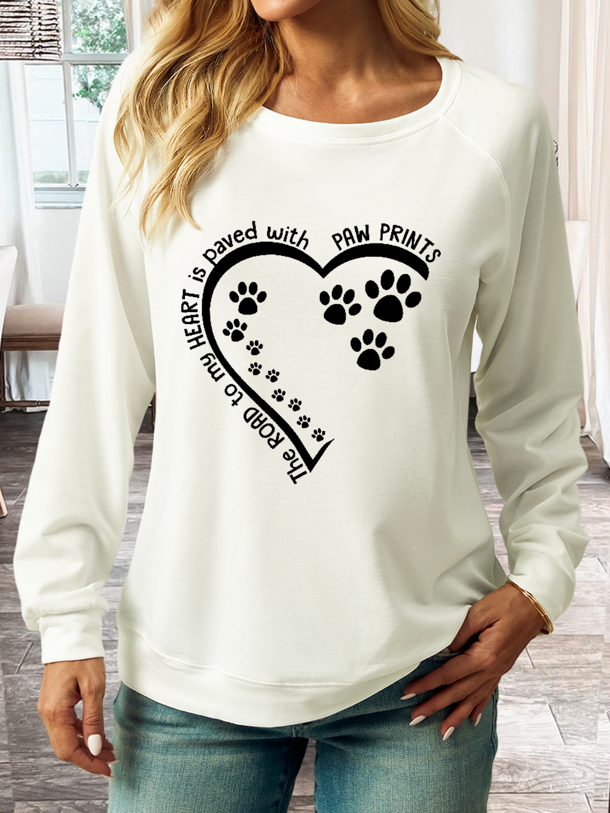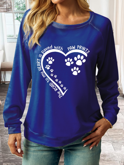 Women's Dog Lovers The Road To My Heart Is Paved With Paw Prints Text Letters Casual Sweatshirt
