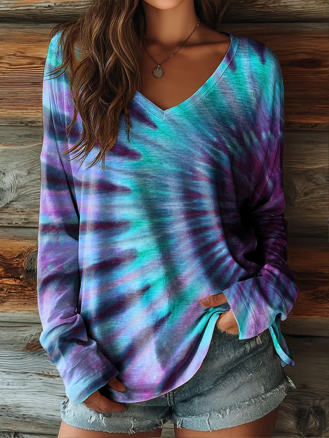 Abstract Print V Neck Jeraey Casual T-Shirt