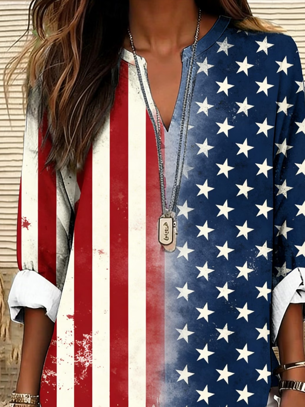 Women's Long Sleeve Shirt Spring/Fall As Picture America Flag Buckle Shirt Collar Regular Sleeve Daily Going Out Casual Top