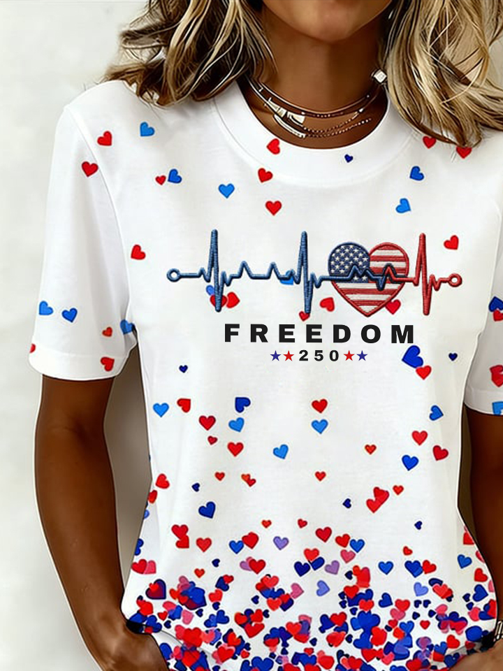 Women's 250th Anniversary Of The Founding Of the United States Cotton Vintage Short Sleeve Crew Neck 3D Printing Daily Going Out Casual T-Shirt