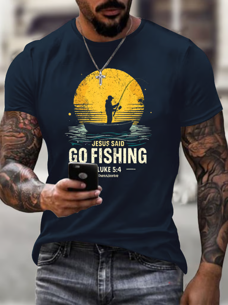 Men's Jesus Said Go Fishing Printed Casual T-shirt