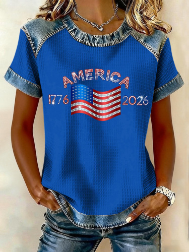 Casual Cotton Crew Neck Independence Day T-Shirt