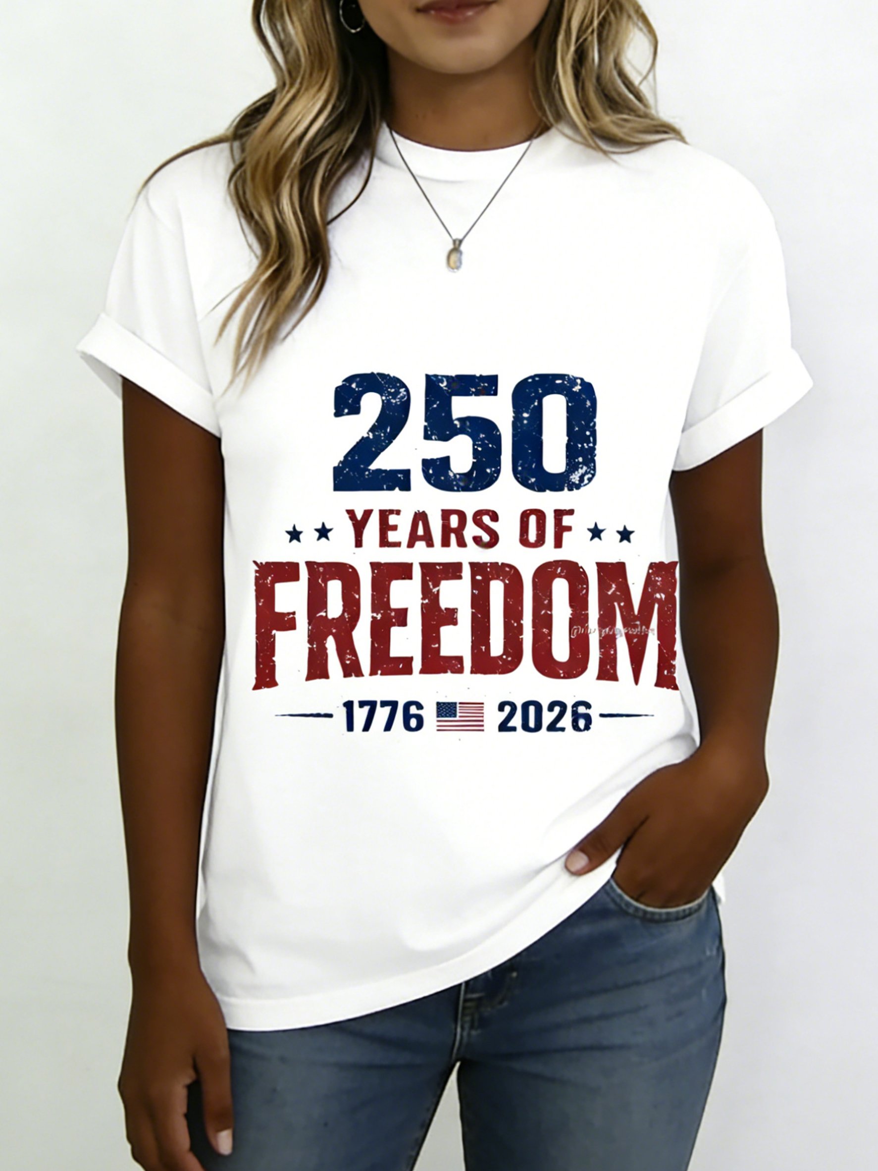 Women's 250th Anniversary Of The Founding Of the United States Short Sleeve T-shirt Summer Text Letters Printing Jersey Crew Neck Daily Going Out Casual Top