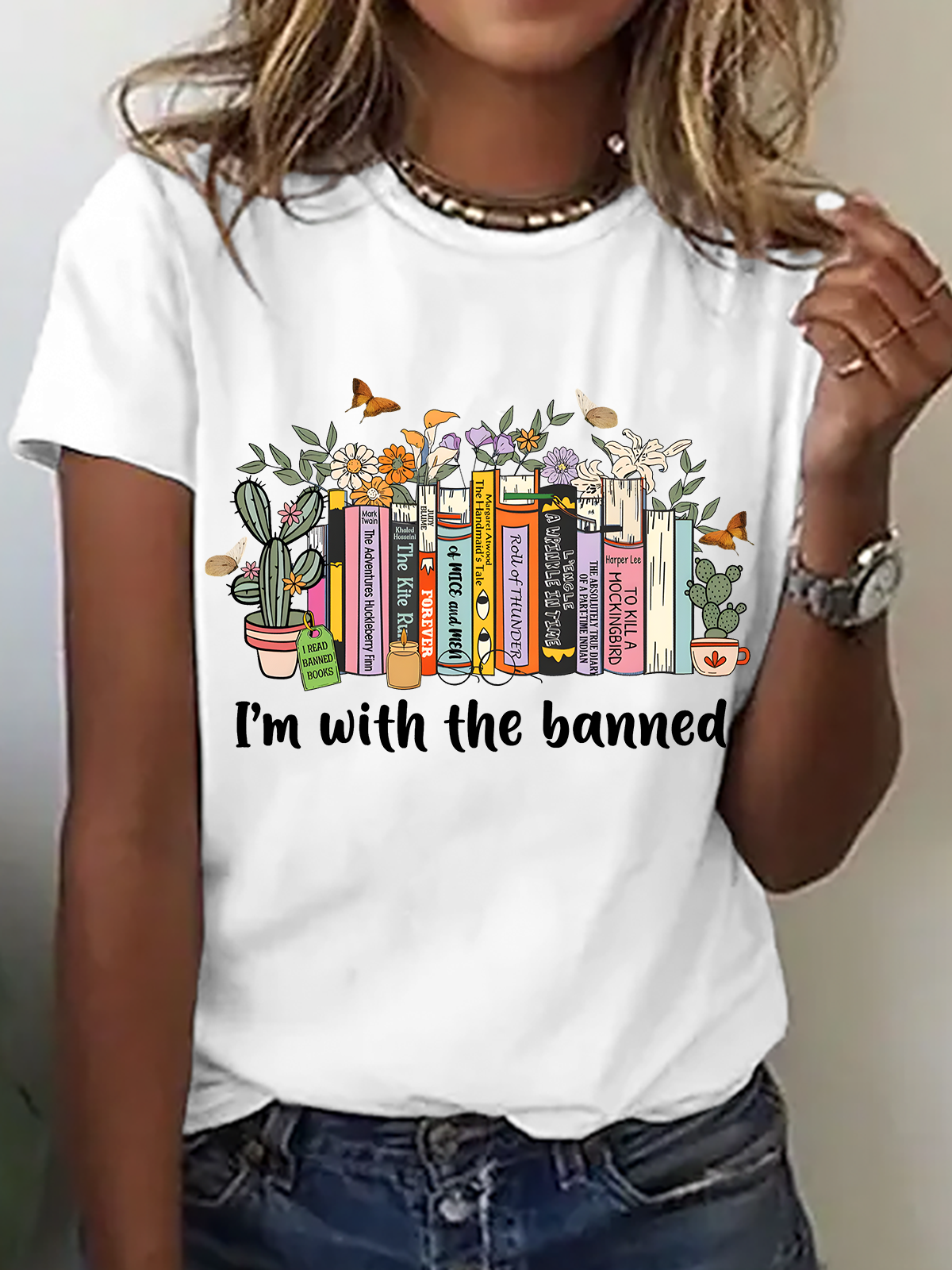 I'm With The Banned Book Lover Cotton T-Shirt