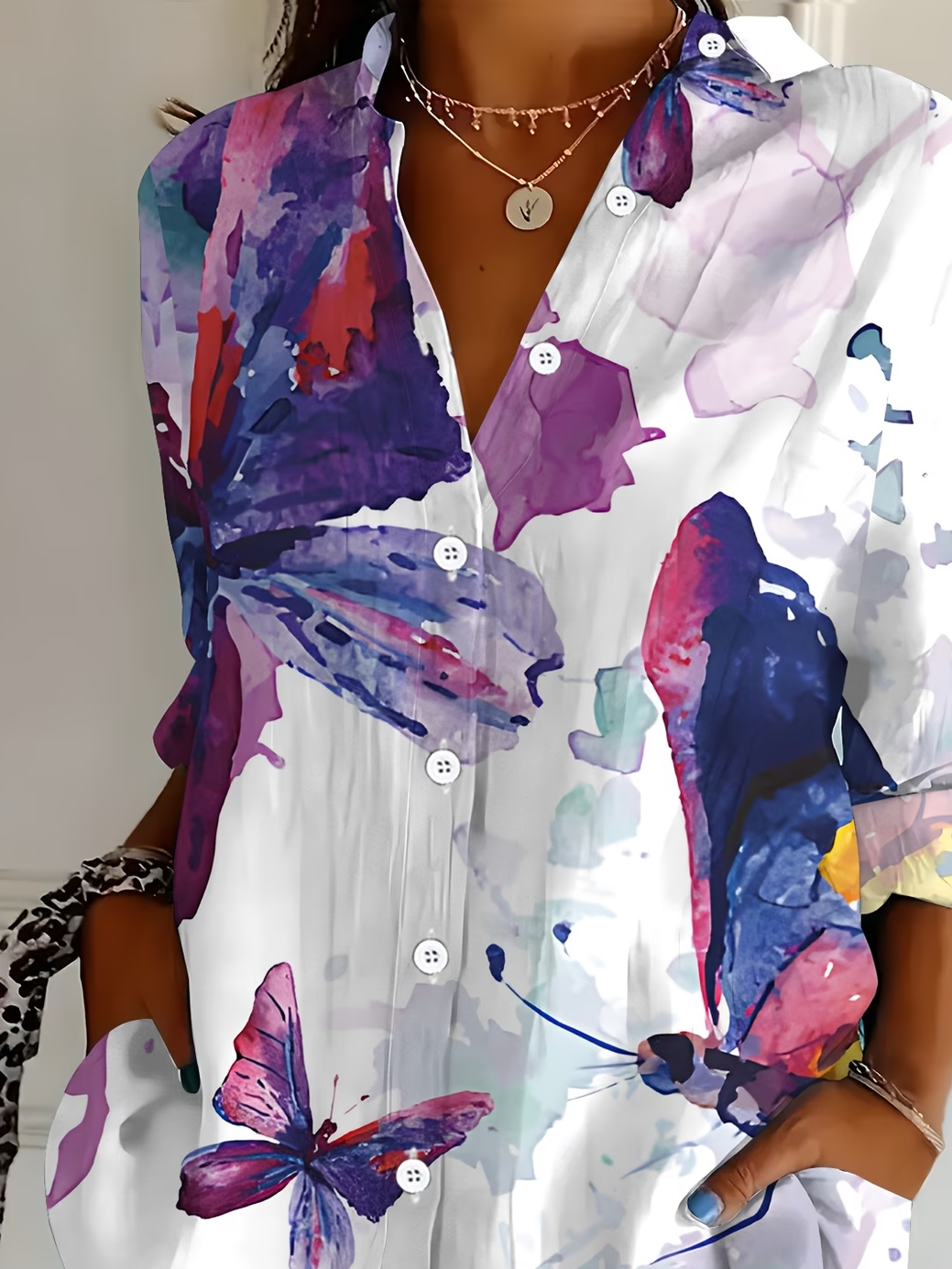 Women's Long Sleeve Shirt Spring/Fall White Butterfly Buckle Shirt Collar Regular Sleeve Daily Going Out Casual Top
