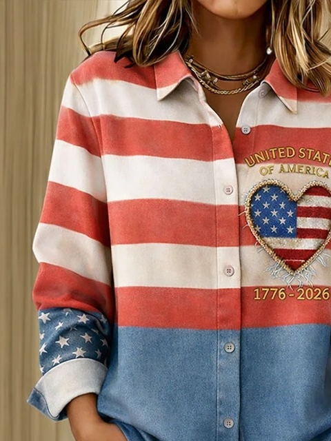 Independence Day Patriotic V-neck Long-sleeved Women's T-shirt