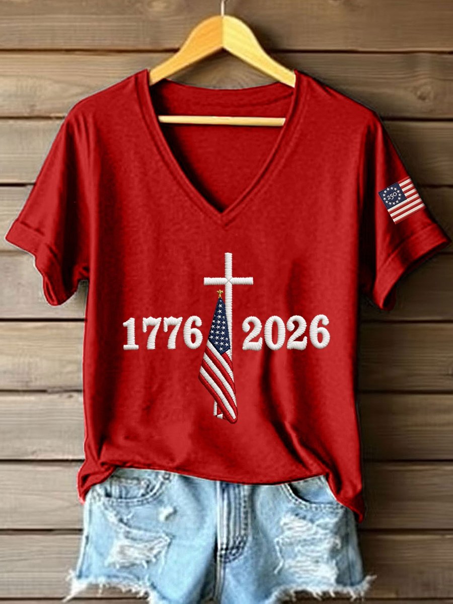 Independence Day Elegant V Neck Cotton T-Shirt