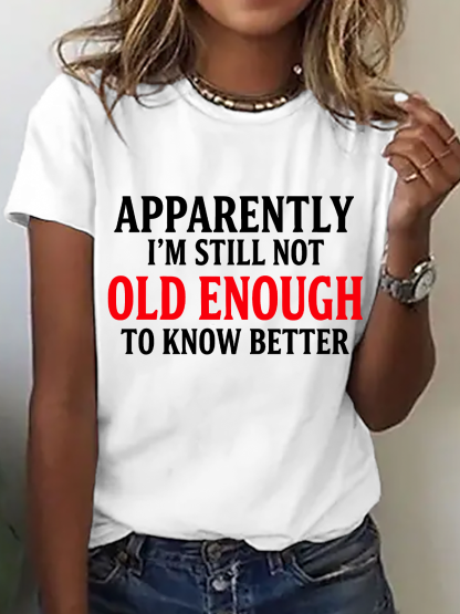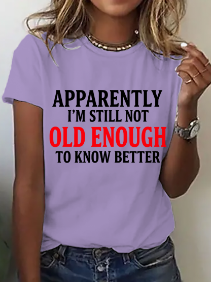 Apparently I'm Still Not Old Enough To Know Better Cotton T-Shirt
