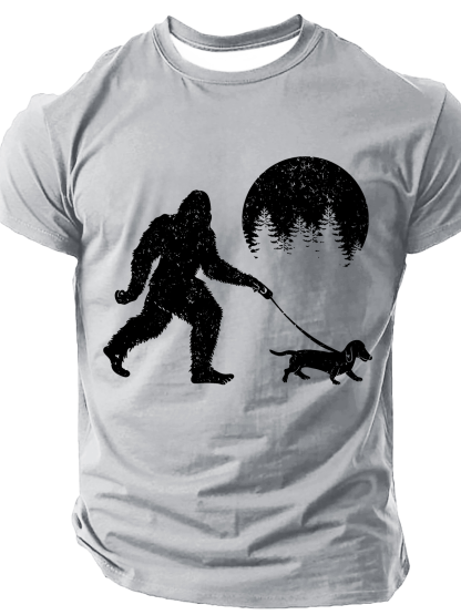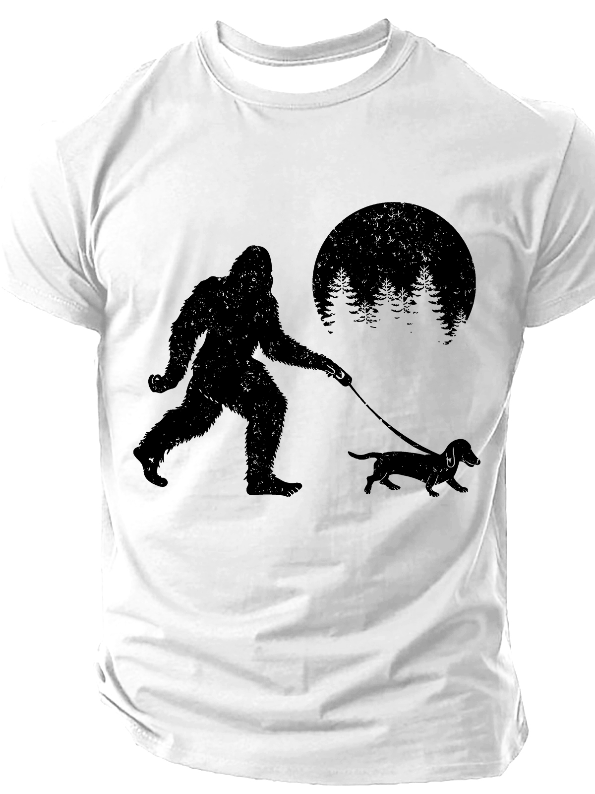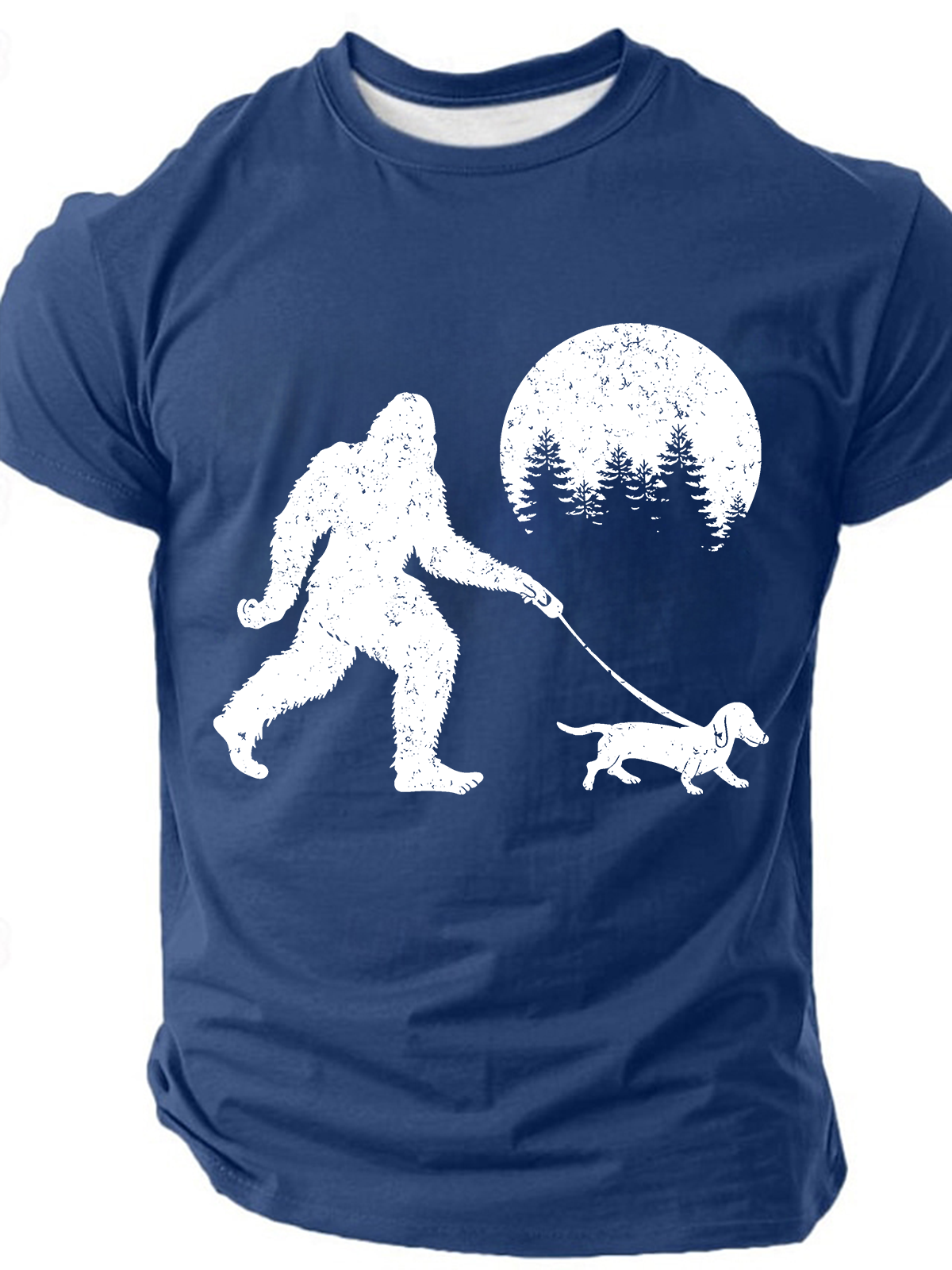Bigfoot Walking Wiener Dog Cotton T-Shirt