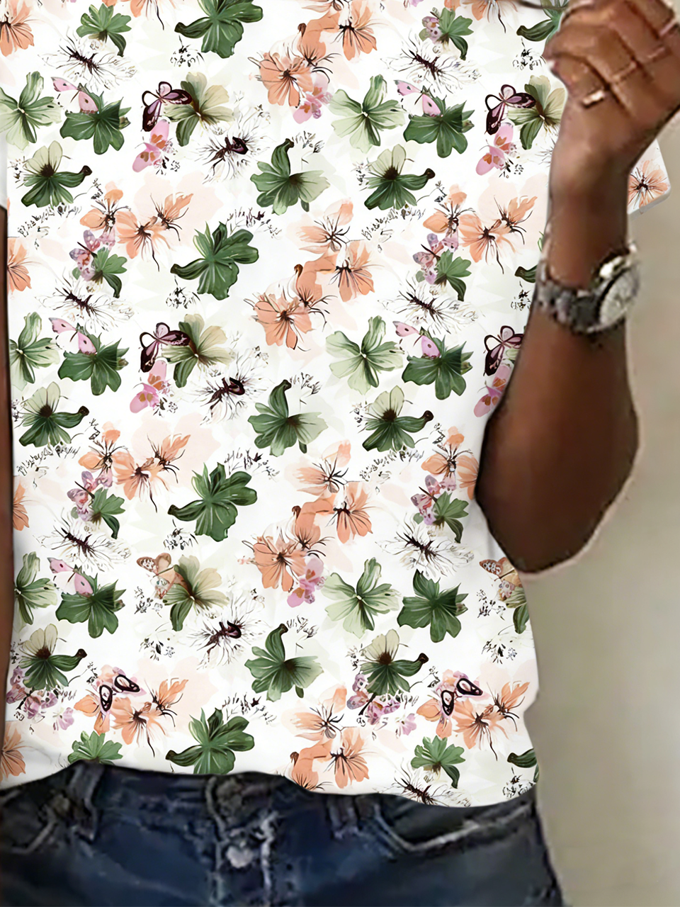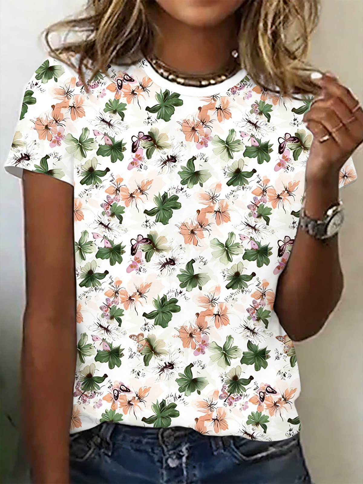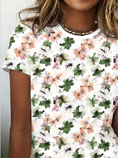 Cotton Casual Crew Neck Floral T-Shirt