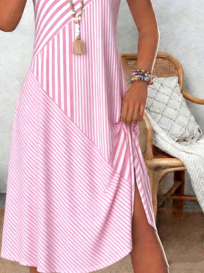 Geometric Cotton Casual Crew Neck Dress With No