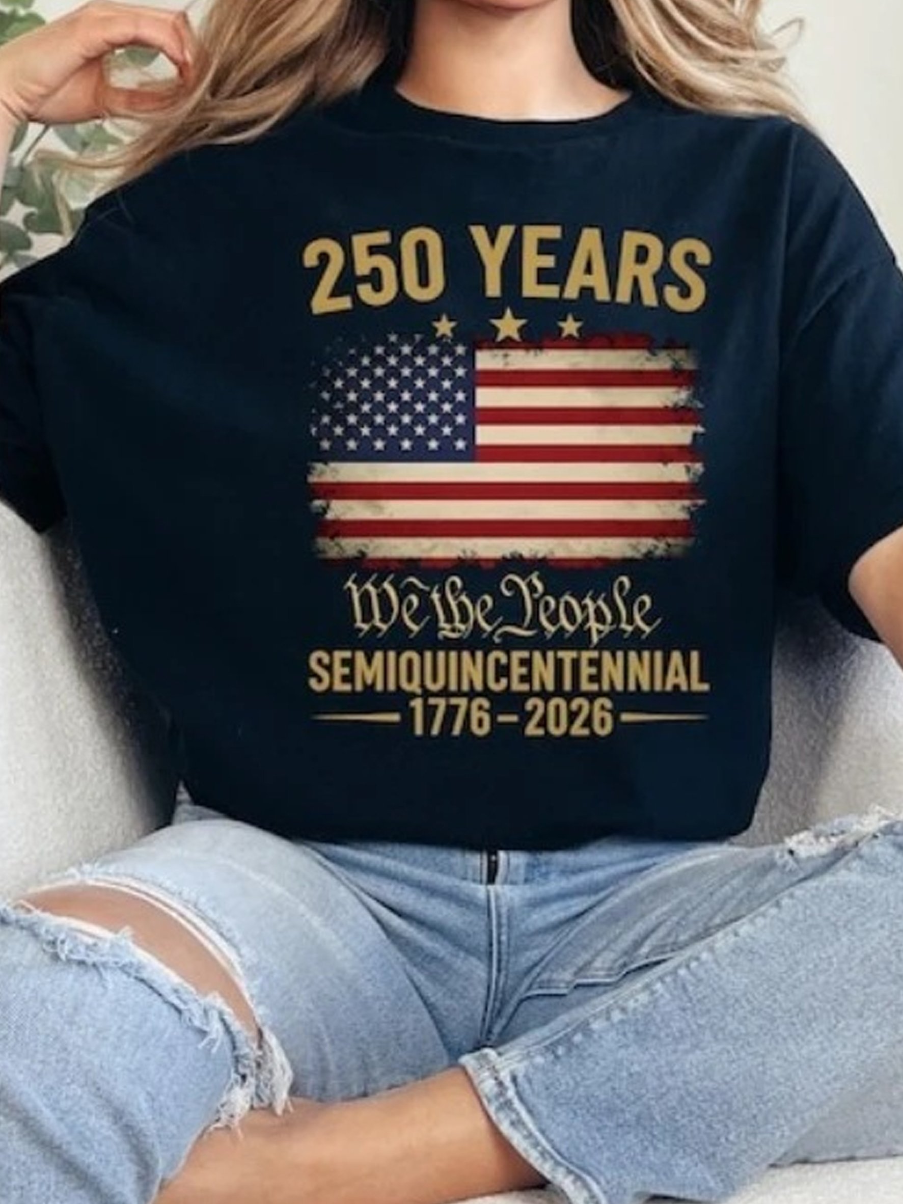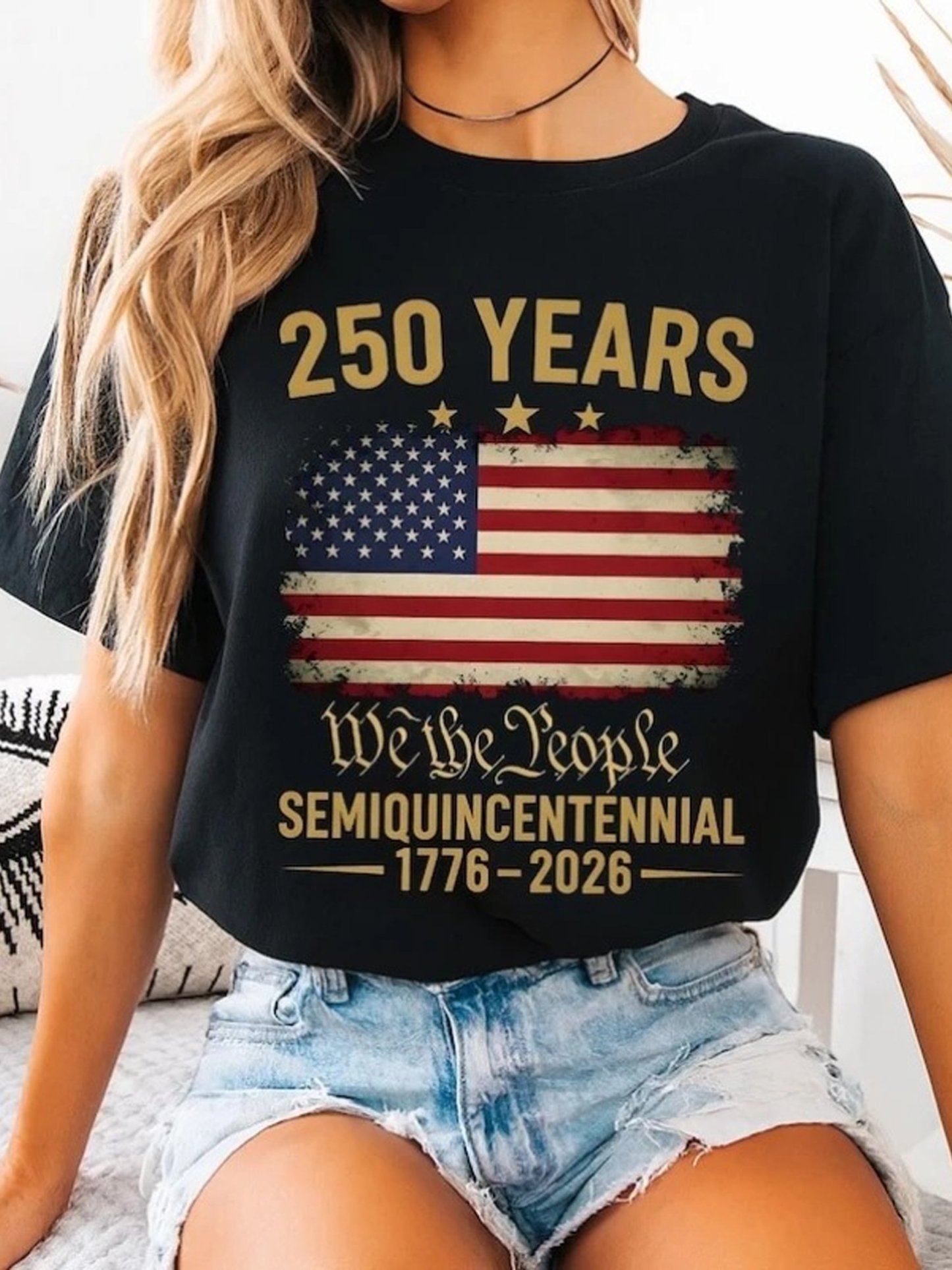 Letter Print Crew Neck Cotton Casual T-Shirt
