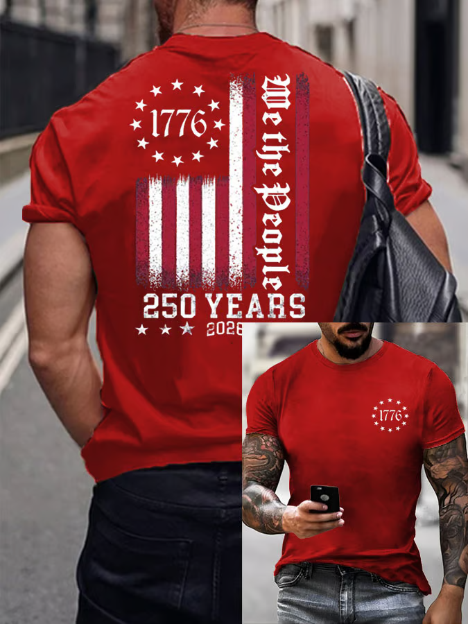 Men's Casual USA 250th Anniversary Printed Short-Sleeve T-Shirt