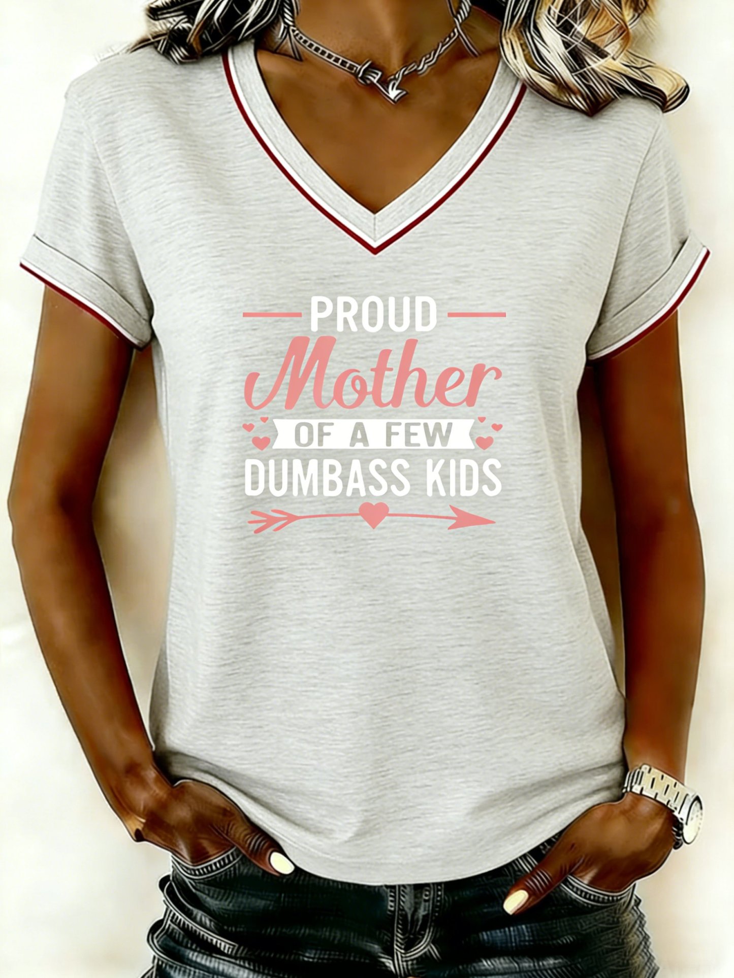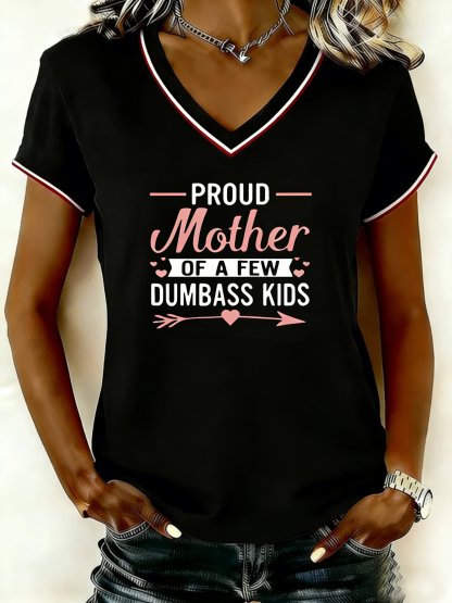 Mother's Day Letter Pattern Short Sleeve V Neck Loose Casual T-Shirt