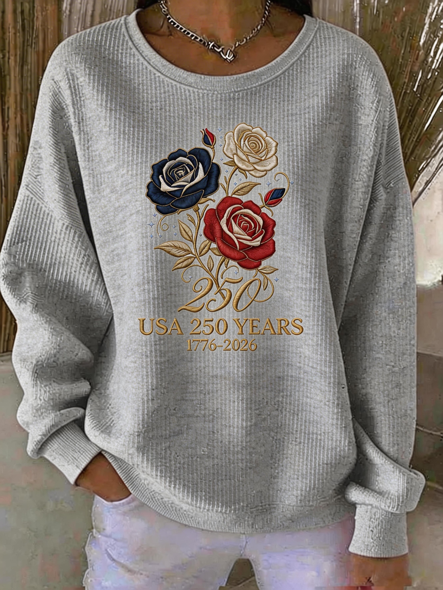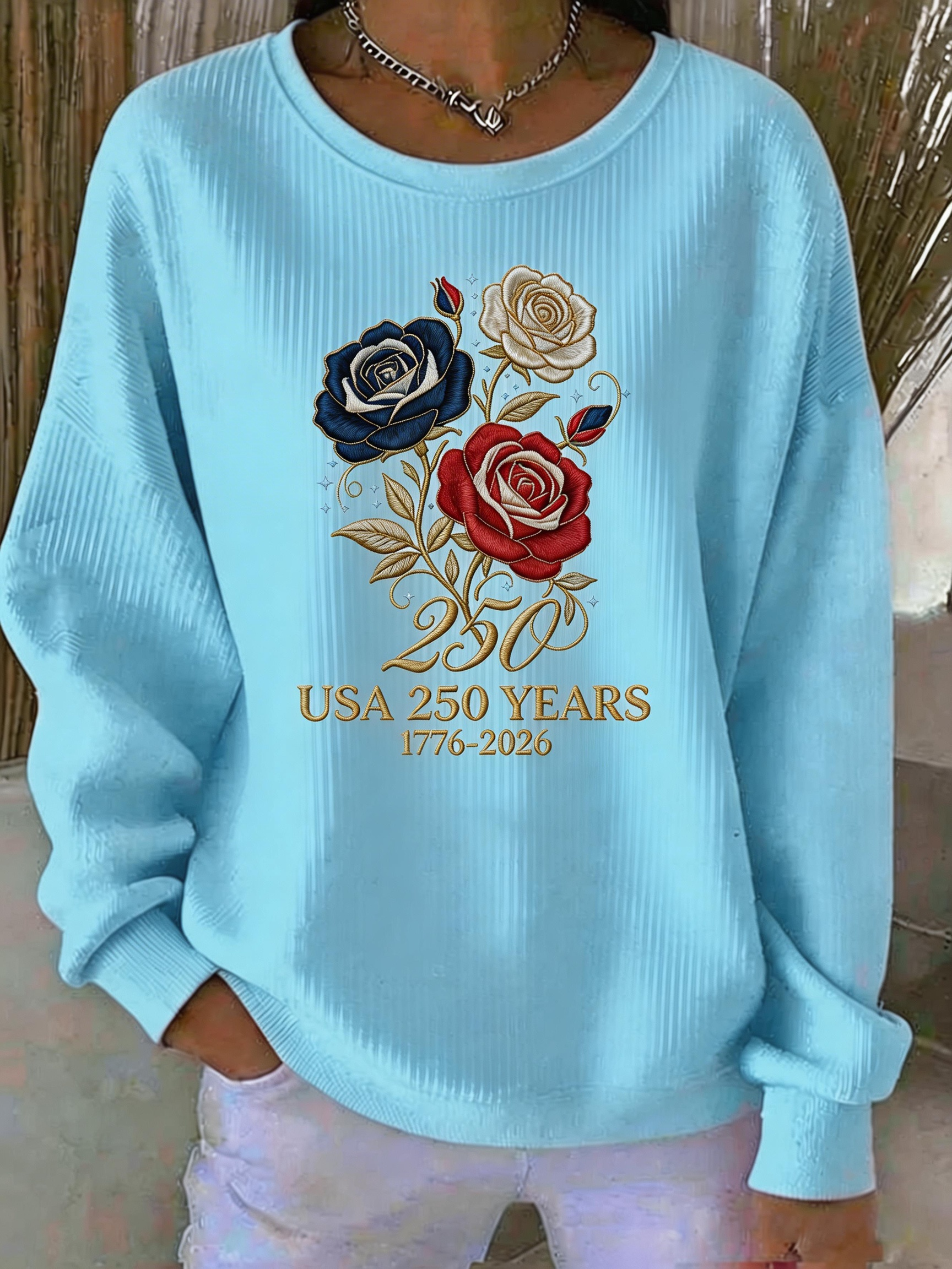 USA 250 Years Celebration Rose Print Sweatshirt