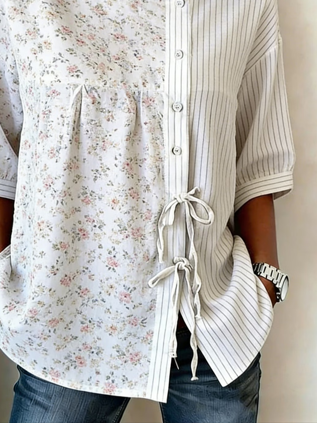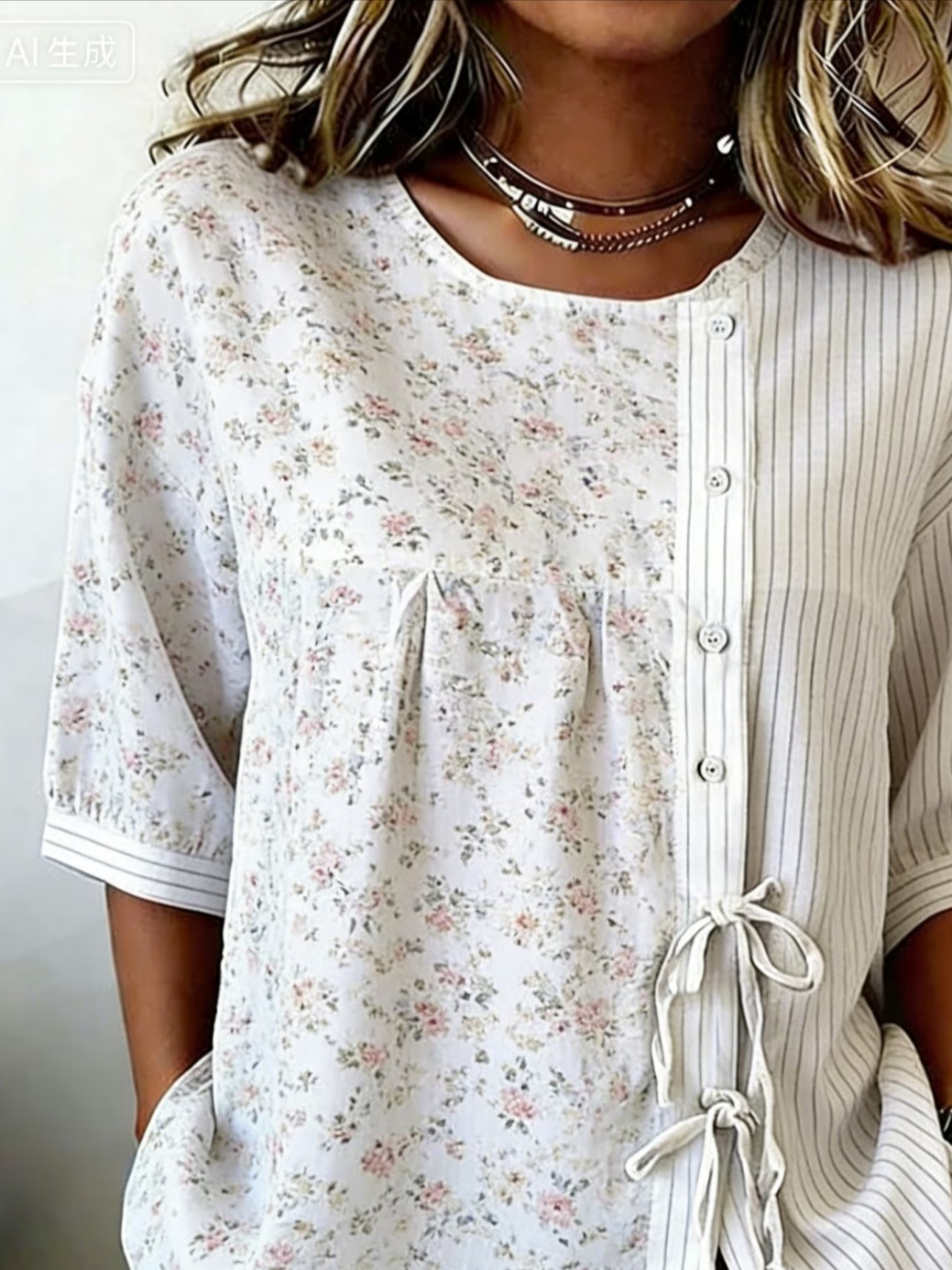 Women's Half Sleeve Shirt Summer White Floral Crew Neck Daily Going Out Vintage Top