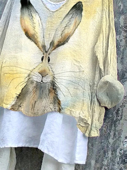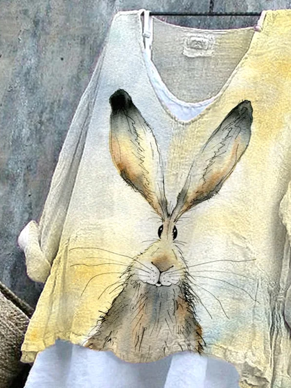 Women's Long Sleeve Blouse Spring/Fall Yellow Easter (rabbit) Printing V Neck Daily Going Out Casual Top